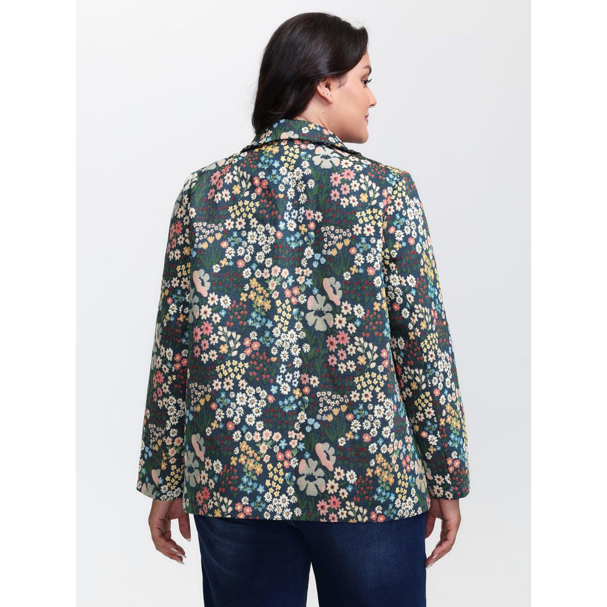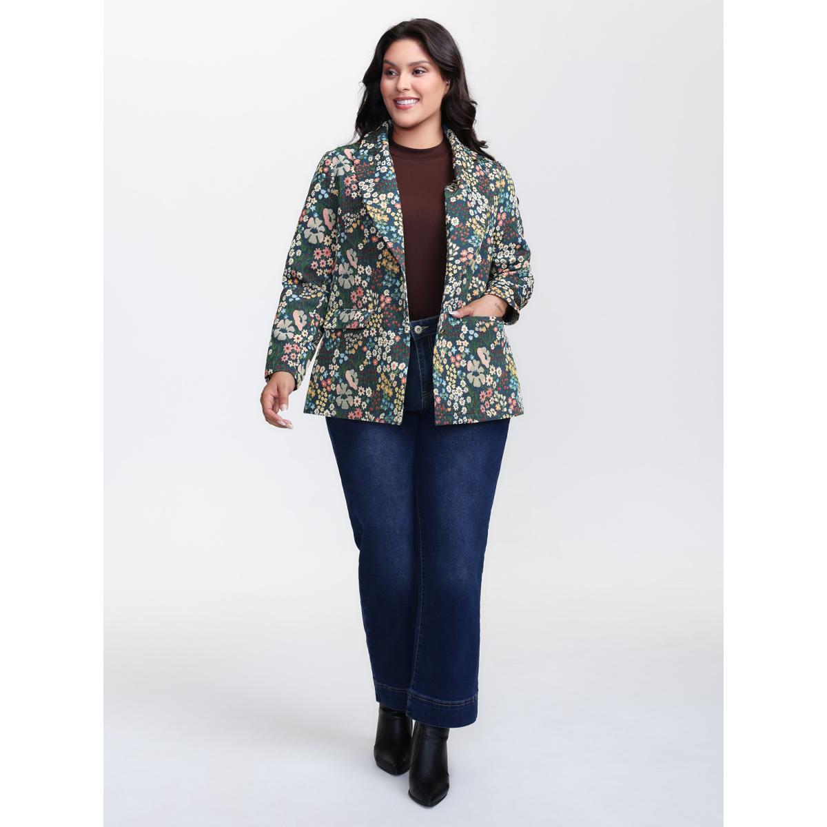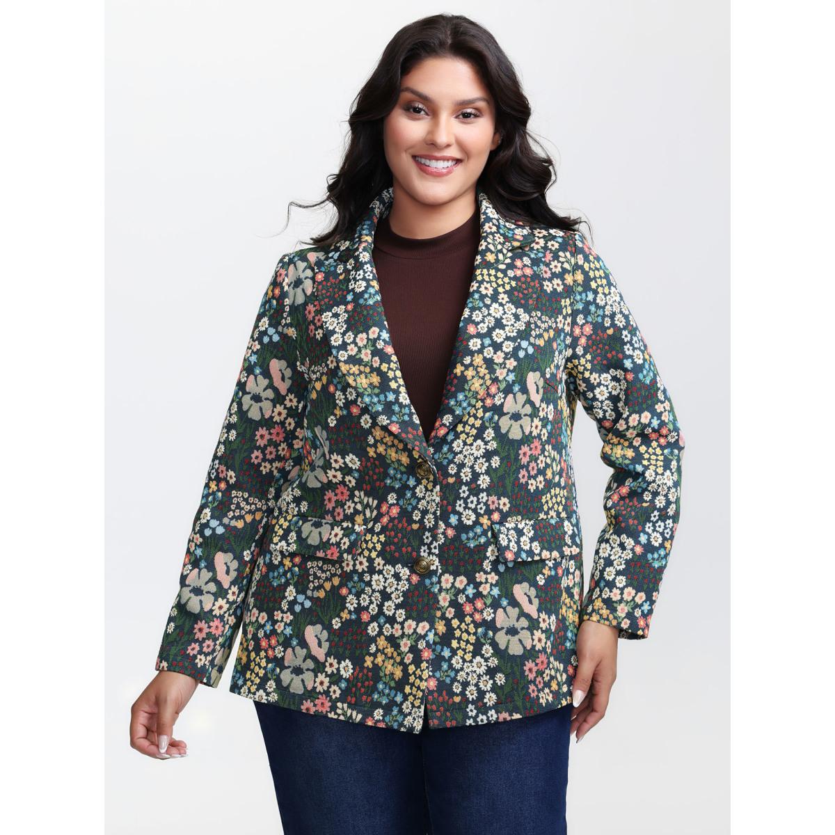 Plus Size Yarn Dyed Jacquard Colorful Blazer Multicolor Women Casual Button Sleeve Long Sleeve Suit Collar 26/4X Open pocket with flap Leisure Blazers BloomChic