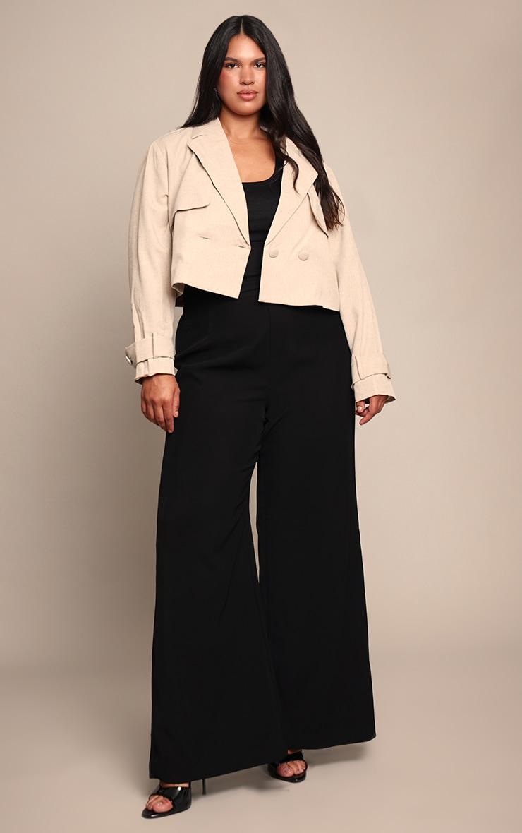 Your definitive day-to-day outerwear essential just dropped. Meet the plus stone short trench, a timeless piece designed to elevate any casual look with ease. Its relaxed, cropped silhouette features a wide, notched collar and distinctive button detailing on the cuffs, while the adjustable tie waist cinches for a flattering fit or can be worn open for a more laid-back vibe. Layer it over light wash denim and a simple Vest for an easy daytime outfit, or pair with tailored pants and classic sneakers for an effortlessly chic approach. It’s the ultimate statement for confident everyday style.Length approx 58.5cm/23inch (Based on sample size US 12)Model wears size UK 16/ EU 44/ AUS 16/ US 12Model Height - 5ft 10inchp]:!mb-4inch>Brand: PrettyLittleThingCategory: OuterwearProduct type: TrenchColor: StoneMaterial: Faux LinenOccasion: Day