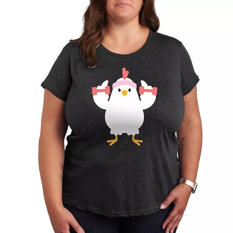 She will love showing off her style with this Plus Workout Chicken Graphic Tee. FEATURES Short sleeves CrewneckFABRIC & CARE Cotton/Polyester Machine wash Imported Size: 2X. Color: Dark Grey. Gender: female. Age Group: adult.