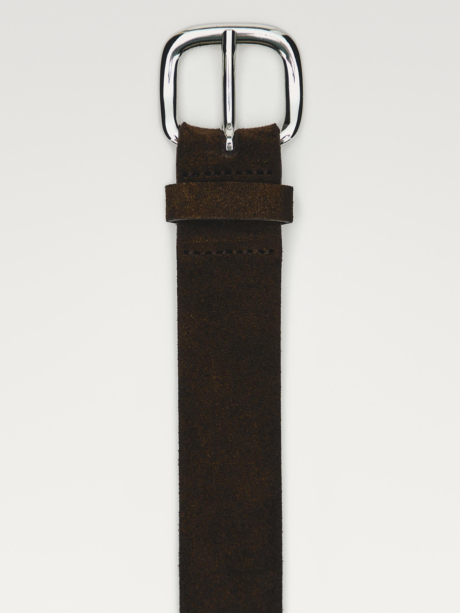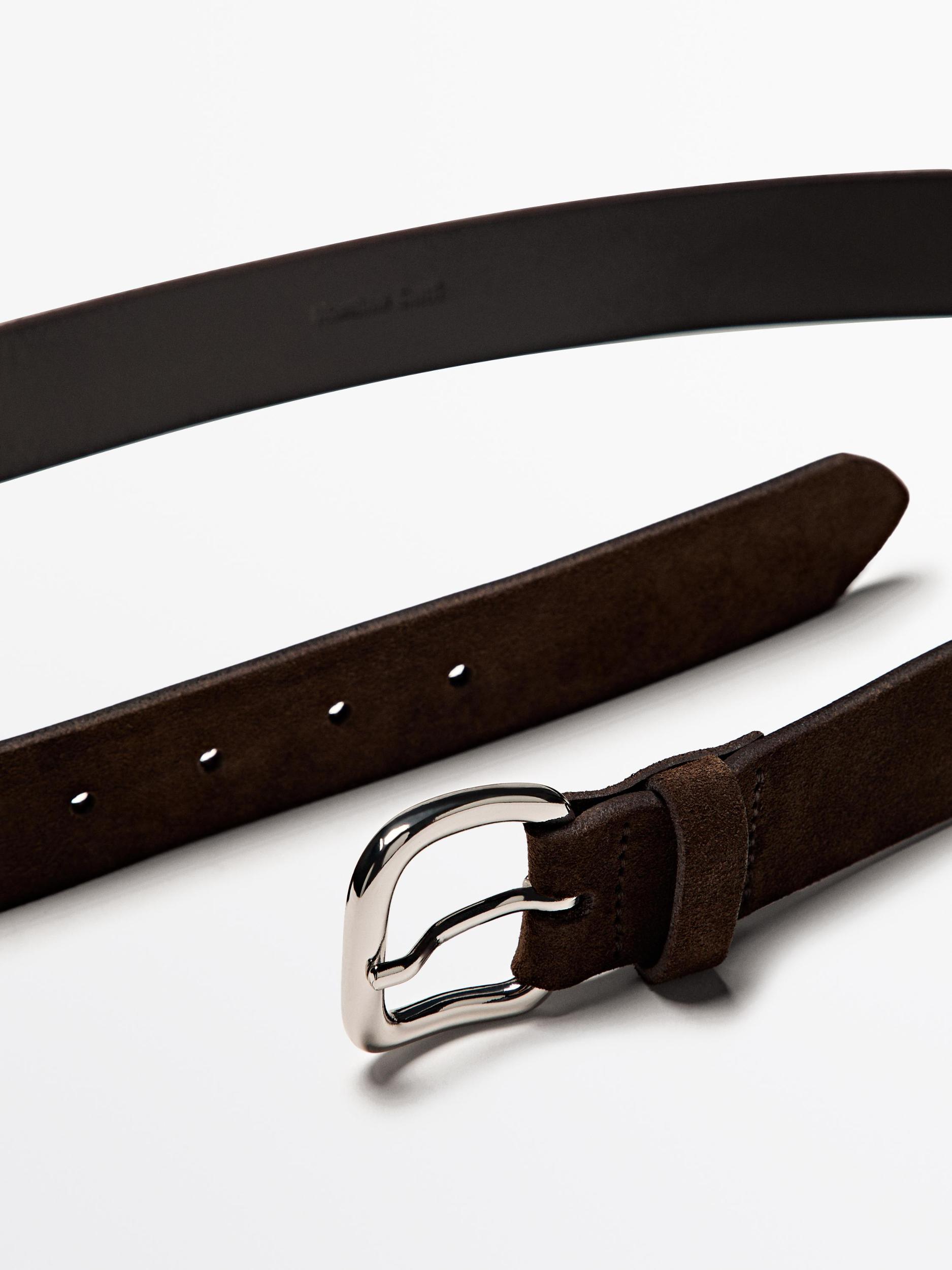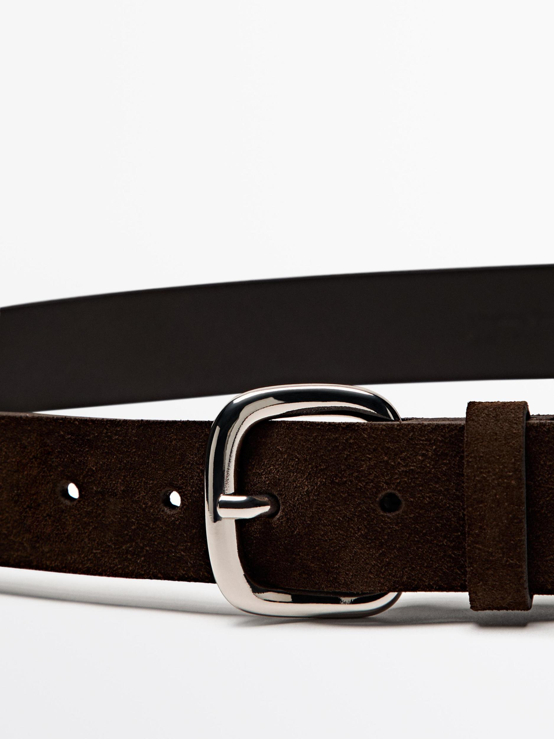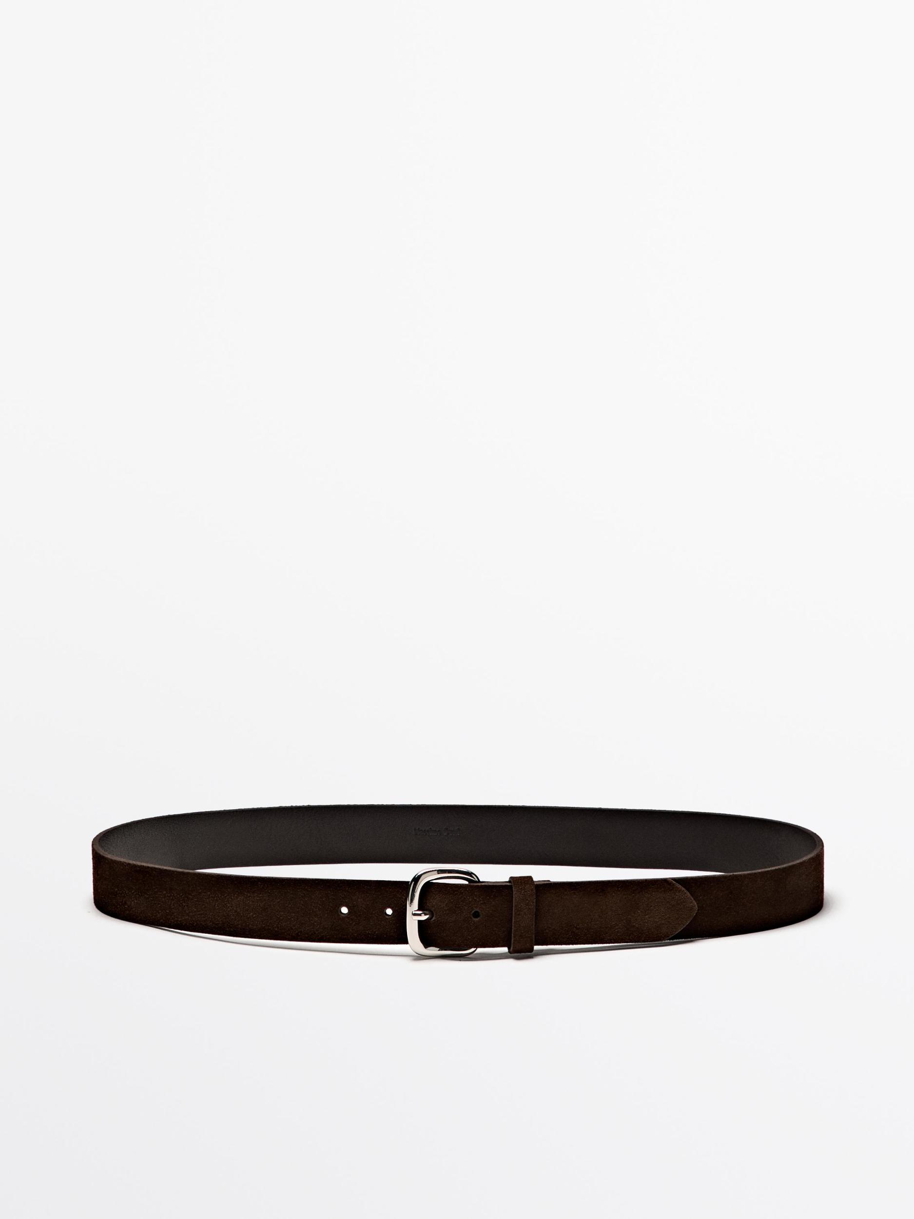 Cowhide leather belt with a plush nappa finish, Metal buckle closure