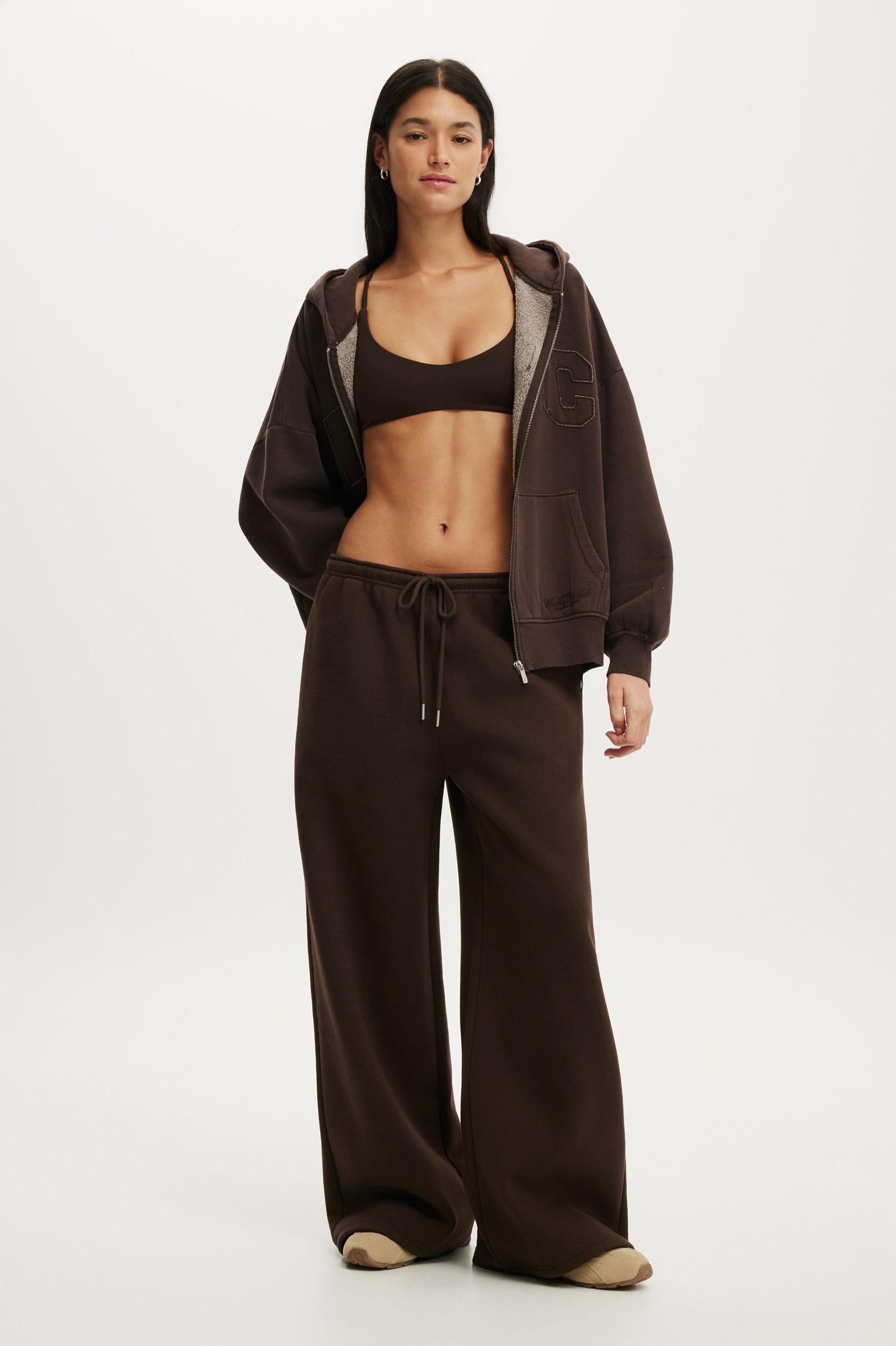 Wide leg silhouette ,Mid rise, true waistline, ultimate comfort ,Elasticated waistband with functioning internal drawcord ,Plush fabric, brushed inner and peached outer for extra softness ,Side pockets to hold your essentials
