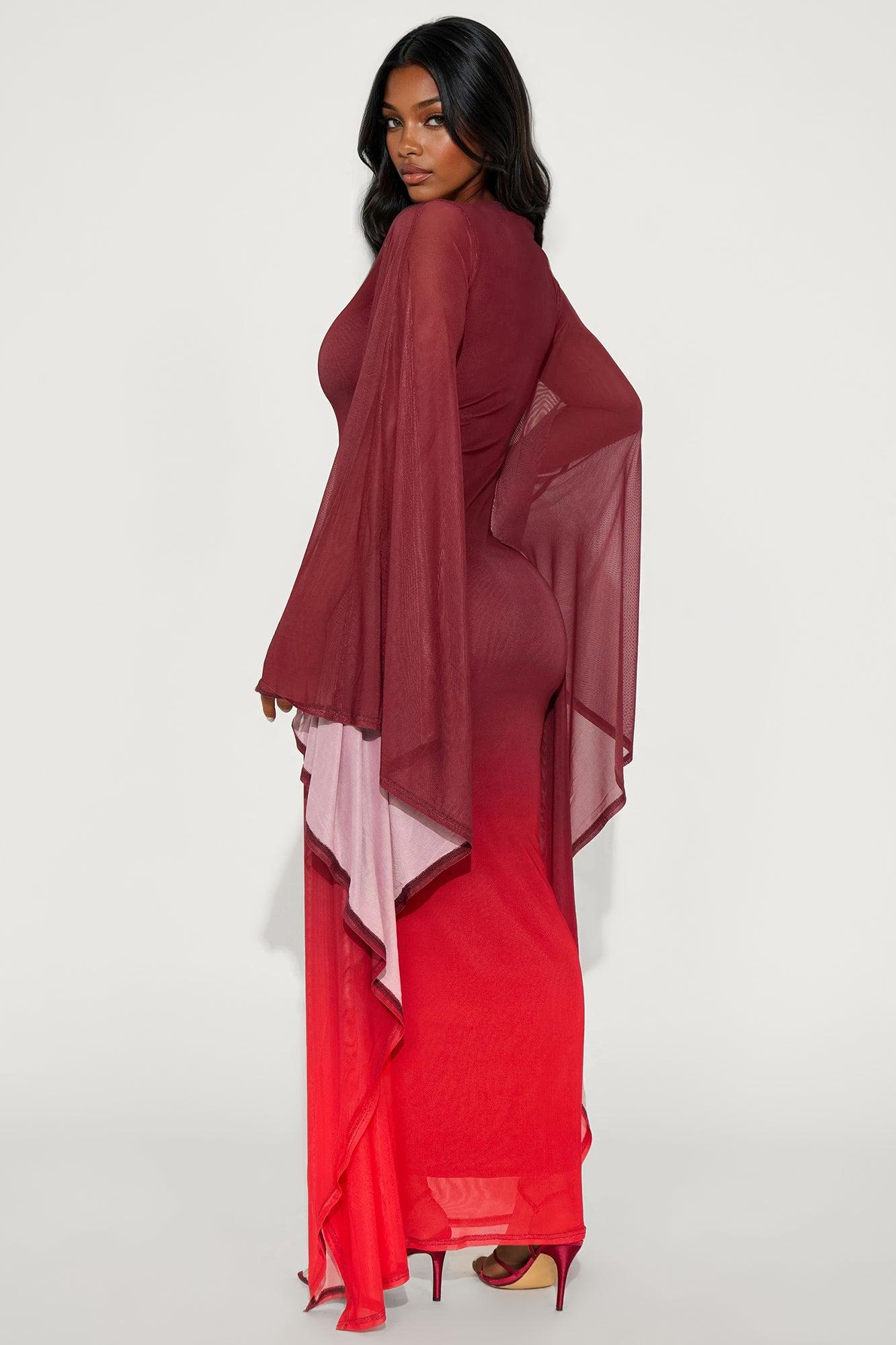 Poisoned Love Ombre Mesh Maxi Dress - Burgundy Female