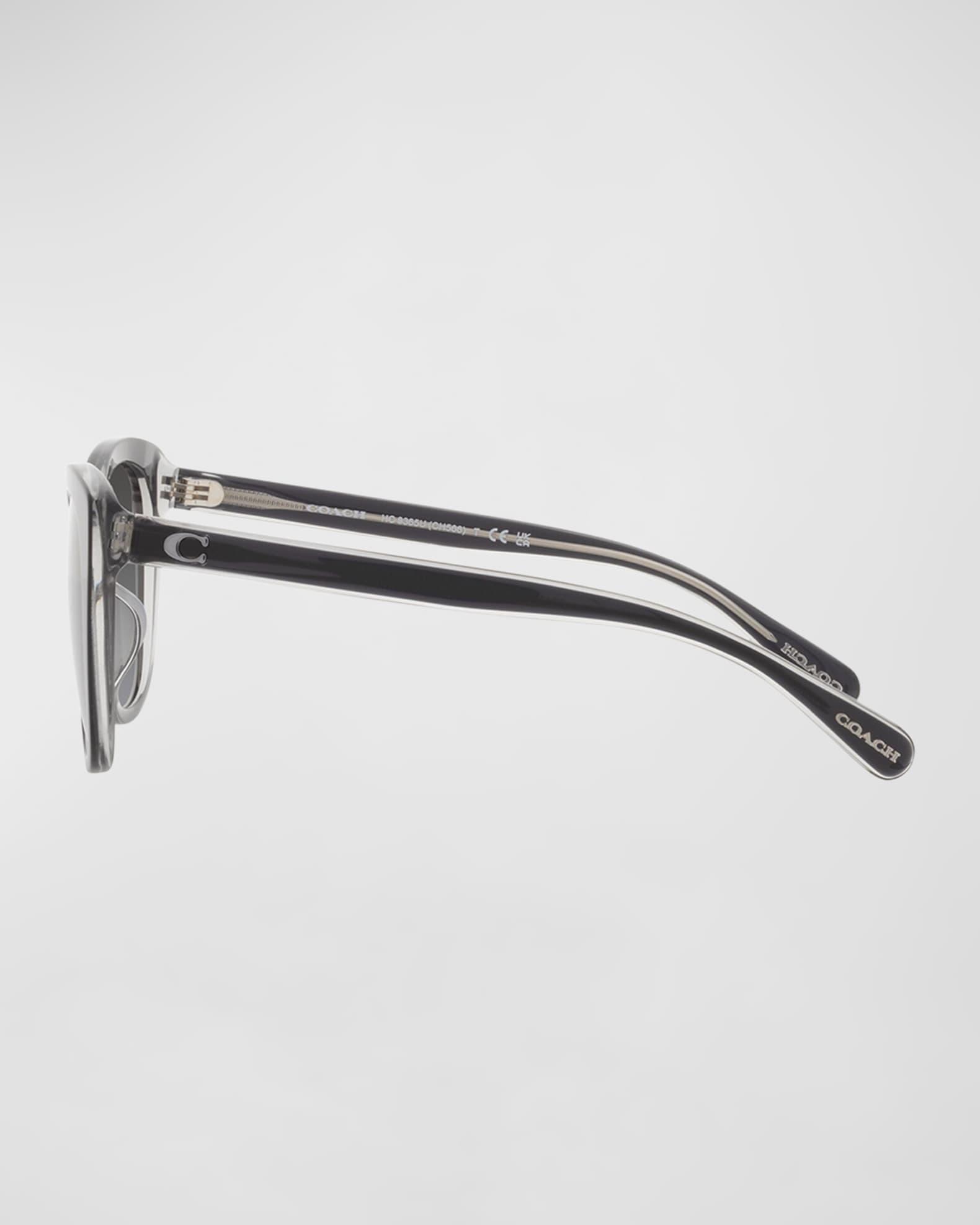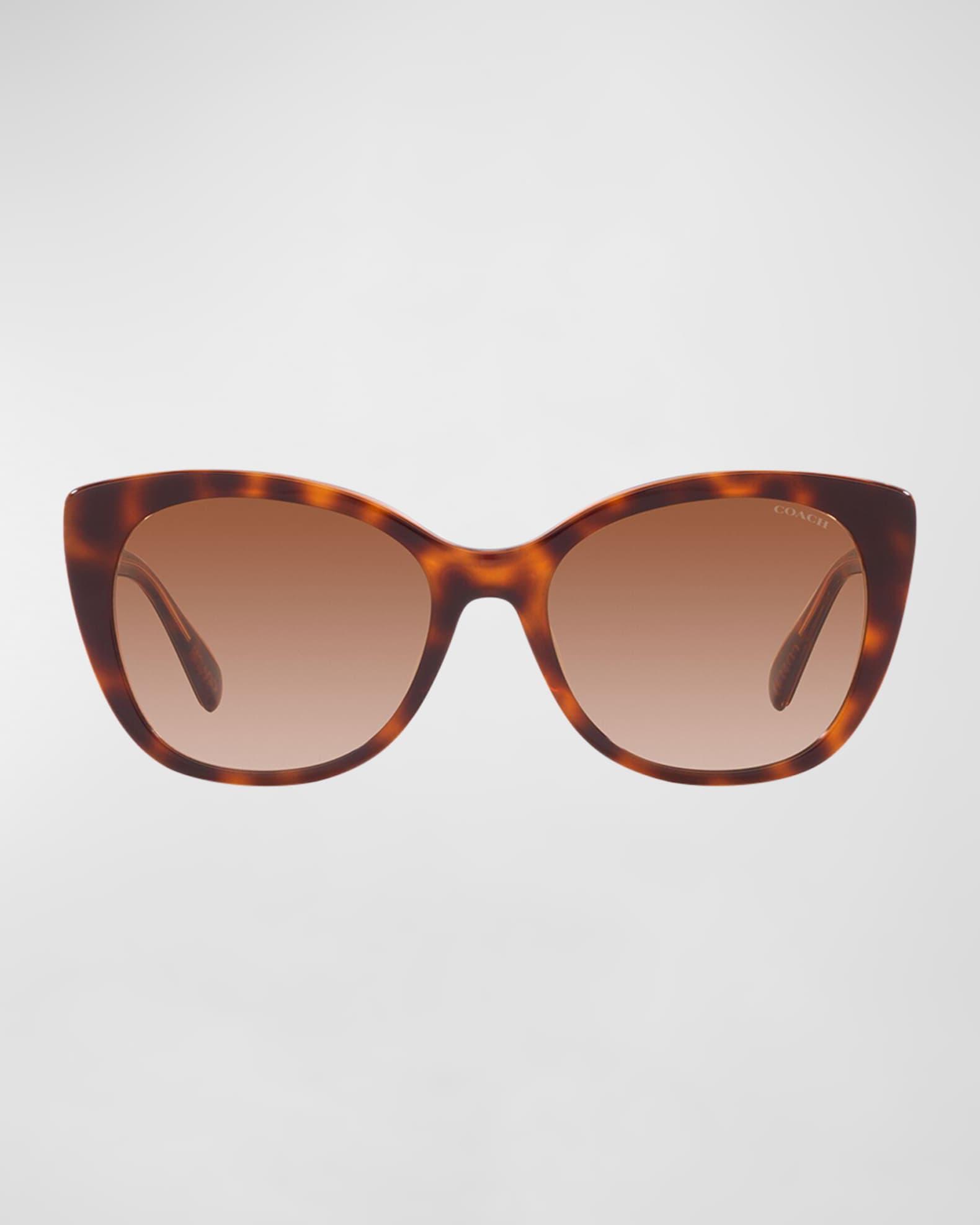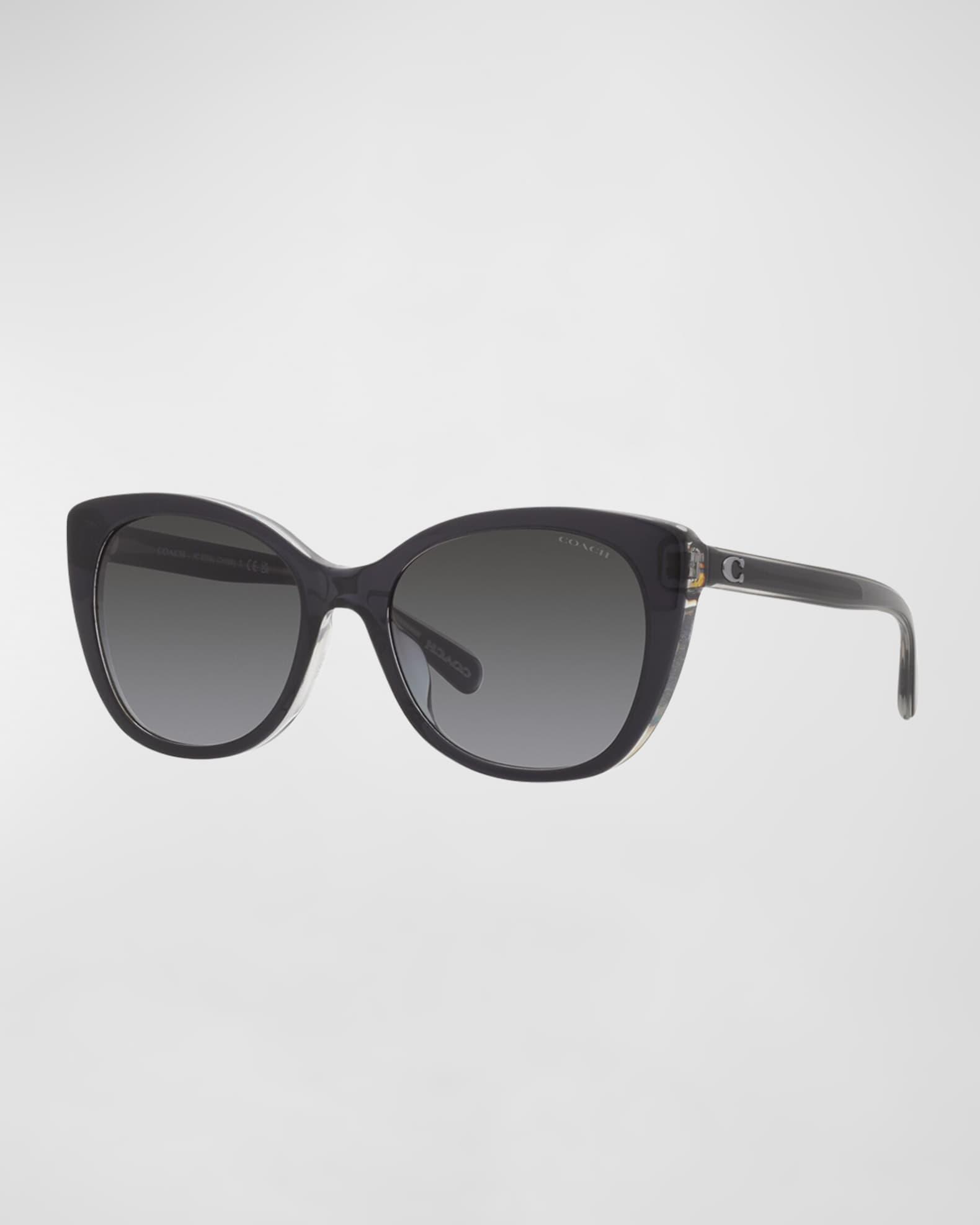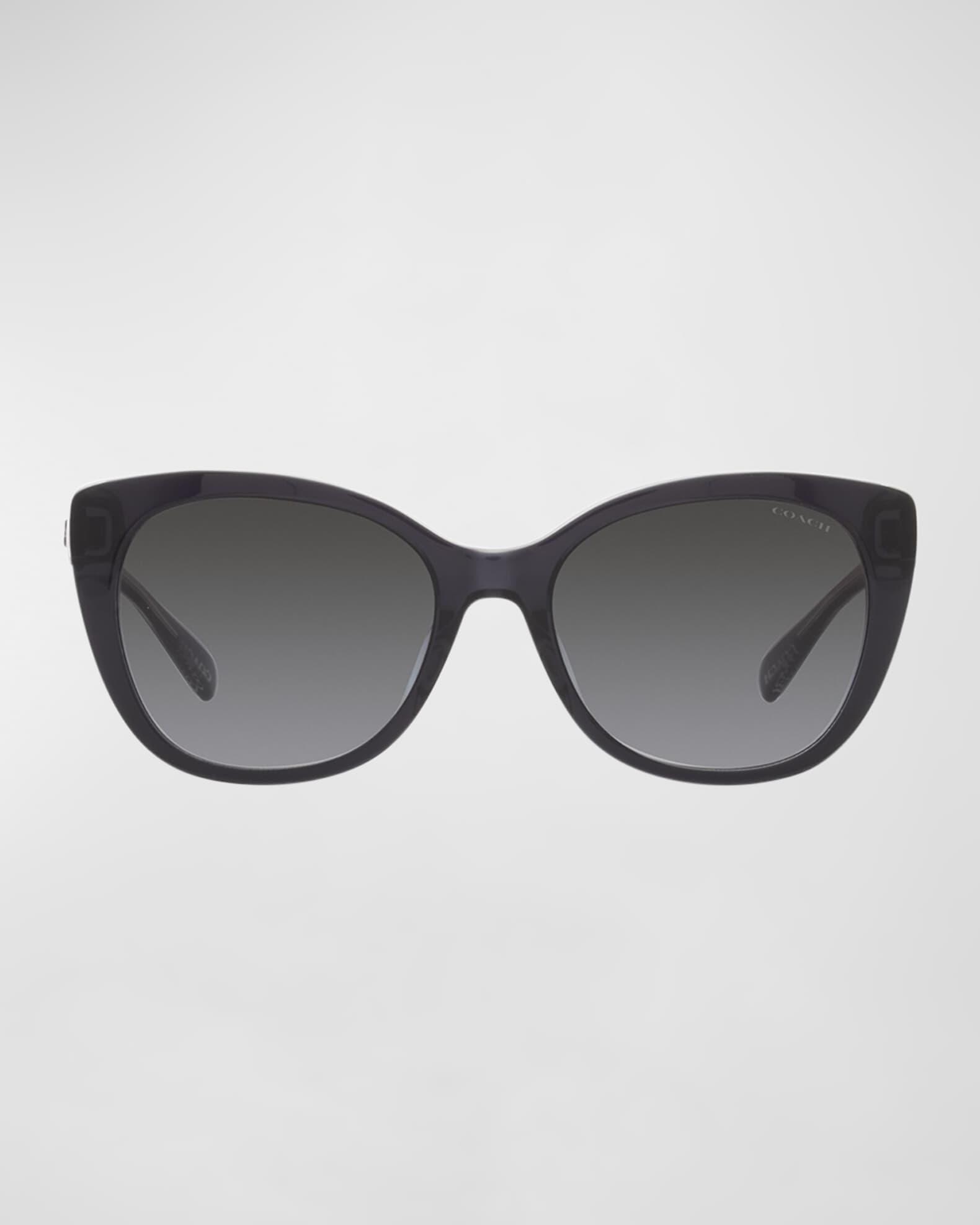 Coach cat-eye sunglasses in acetate Lens/bridge/temple (in mm): 55-18-140 Gradient, polarized lenses Saddle nose bridge C monogram on temples Thin, tapered arms Style is Rx-able 100% UVA/UVB protection Made in Italy Proposition 65 warning for California residents