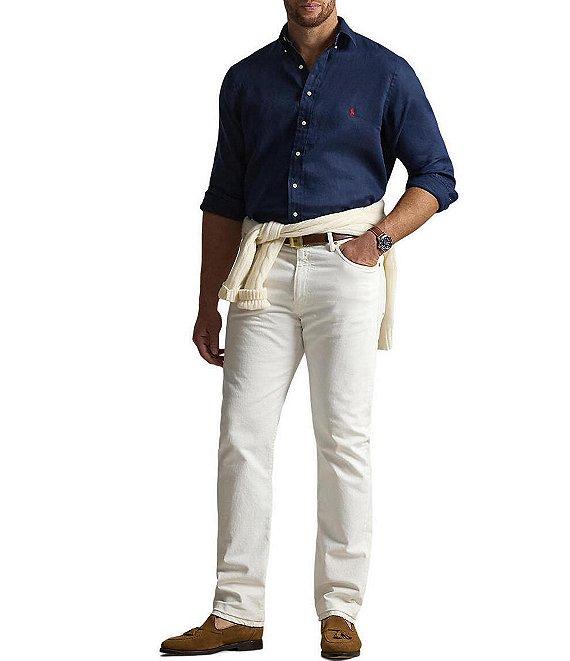 From Polo Ralph Lauren Big & Tall, this shirt features: Point collar Long sleeves with buttoned barrel cuffs Full button-front closure Signature embroidered Pony on the left side of the chest Split back yoke with a box pleat ensures a comfortable fit and a greater range of motion Linen Machine wash/tumble dry Imported.