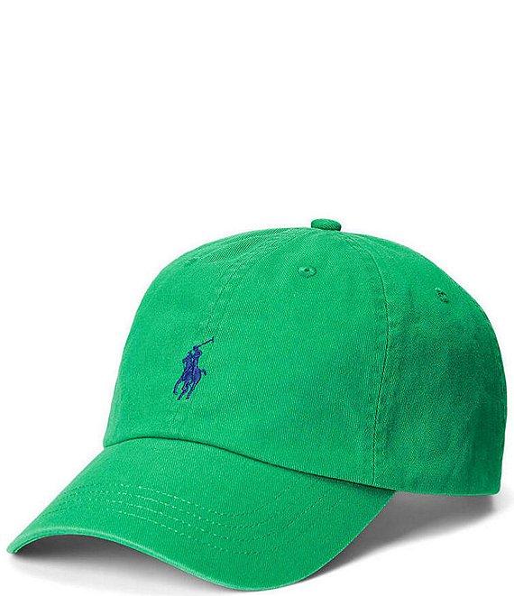 From Polo Ralph Lauren, this hat features: classic baseball cap silhouette 6-panel construction with embroidered eyelets at the crown Ralph Lauren's signature embroidered pony accents the center front seamed bill adjustable back strap with an antiqued nickel buckle embroidered "Polo" at the center back one size Approx. 23 1/4 circumference cotton spot clean Imported.