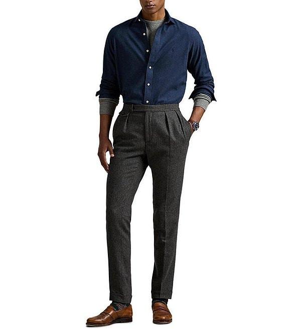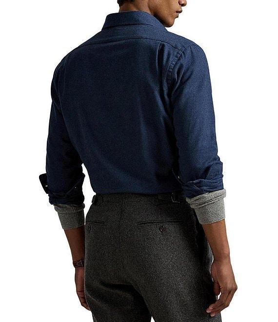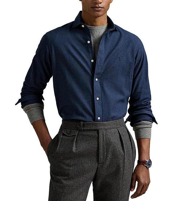 From Polo Ralph Lauren, this shirt features: Medium-spread collar Long sleeves with buttoned barrel cuffs Button-front closure Embroidered "Pony" on the left side of the chest Split pleated back yoke ensures smooth, contoured shoulders Moisture wicking Stretch fabric Cotton/polyester Machine wash/tumble dry Imported.