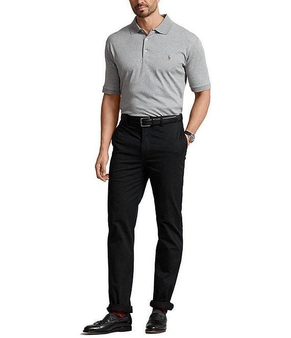 From Polo Ralph Lauren, these chino pants feature: Classic fit Sits at the waist, eased through the leg Belt loops Zip fly with a buttoned closure 2 front angled pockets Right hip coin pocket 2 back buttoned pockets Signature embroidered Pony above the back right pocket Stretch fabric Cotton/elastane Machine wash/tumble dry Imported.
