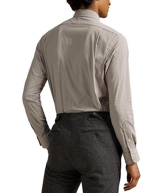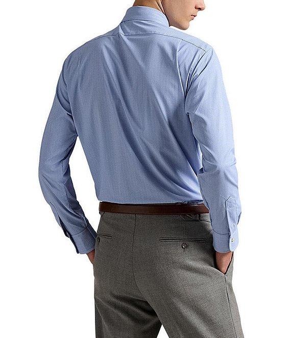 From Polo Ralph Lauren, this shirt features: Stretch fabric Medium-spread collar Long sleeves with buttoned barrel cuffs Button-front closure Split pleated back yoke ensures smooth, contoured shoulders Signature embroidered "Pony" on the left side of chest Classic fit Moisture wicking Nylon/elastane Machine wash/tumble dry Imported.