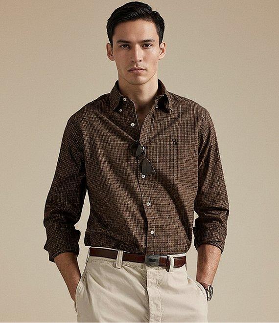 From Polo Ralph Lauren, this shirt features: Twill Plaid print Button-down point collar Button-front closure Long sleeves with buttoned barrel cuffs Signature embroidered "Pony" on the left side of chest Split back yoke with a box pleat ensures a comfortable fit and a greater range of motion Cotton Machine wash/tumble dry Imported.