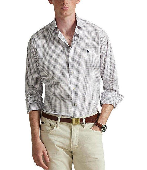 From Polo Ralph Lauren, this shirt features: Medium-spread collar Long sleeves with buttoned barrel cuffs Button-front closure Signature embroidered "Pony" on the left side of chest Split pleated back yoke ensures smooth, contoured shoulders Classic fit Soft, breathable cotton/elastane poplin with extra stretch for added comfort Machine wash/tumble dry Imported.