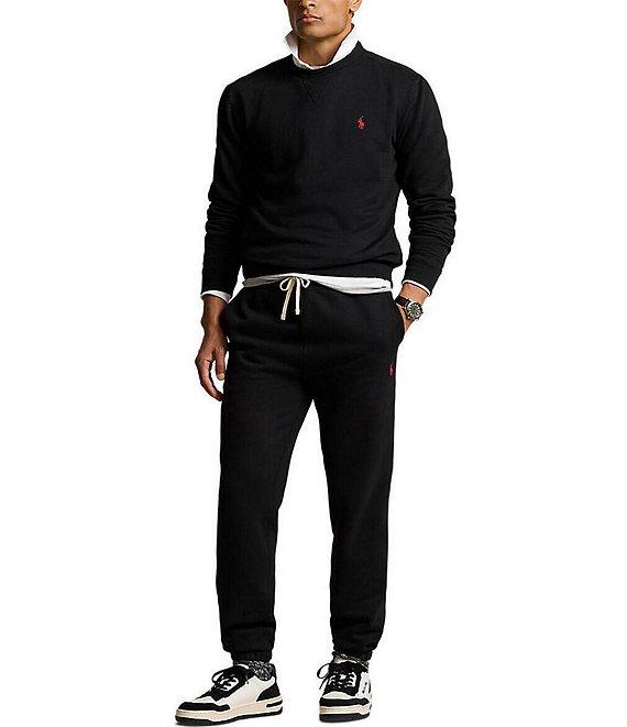 From Polo Ralph Lauren, these pants feature: fleece fabrication elasticized drawstring waist 2 front angled pockets back right patch pocket signature embroidered Pony at the left hip elasticized cuffs pull-on construction cotton/polyester machine wash/tumble dry Imported.