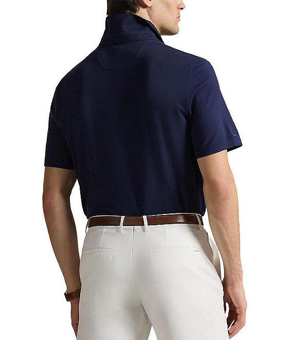 From Polo Ralph Lauren, this polo shirt features: Ribbed polo collar Short sleeves Silicone “RLX” tab on the right sleeve 3-button placket Corozo buttons custom-developed with an “RLX Ralph Lauren” logo Signature embroidered "Pony" on the left side of chest Tennis tail Pullover construction Moisture wicking Stretch pique fabric Cotton/polyester/elastane Machine wash/tumble dry Imported.