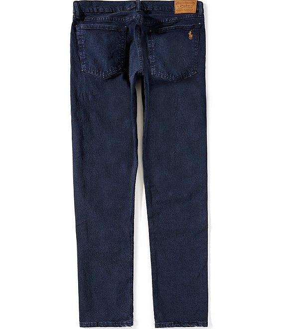From Polo Ralph Lauren, these jeans feature: Sullivan slim fit Regular rise Trim fit through the seat and thigh Belt loops Zip fly with a buttoned closure Metal button custom-developed with a "Polo Ralph Lauren" logo Five-pocket styling Metal rivets custom-developed with a “PRL 67” logo Leather “Polo Ralph Lauren” patch at the back right waist Signature embroidered Pony at the back right pocket Stretch denim fabric Cotton/elastane Machine wash Imported.