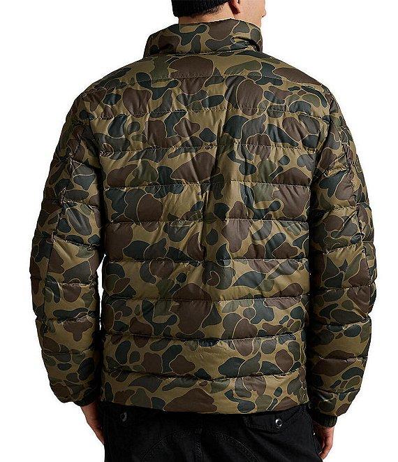 From Polo Ralph Lauren, this jacket features: Allover camouflage pattern Mock neck collar Long sleeves Zip-front closure Signature "Pony" embroidered on the left side of chest Dual front waist zip pockets Drawstring hem Fully lined Fully filled Jacket is packable Shell: polyester Lining: polyester Fill: duck down/duck feathers Machine wash/tumble dry Imported.