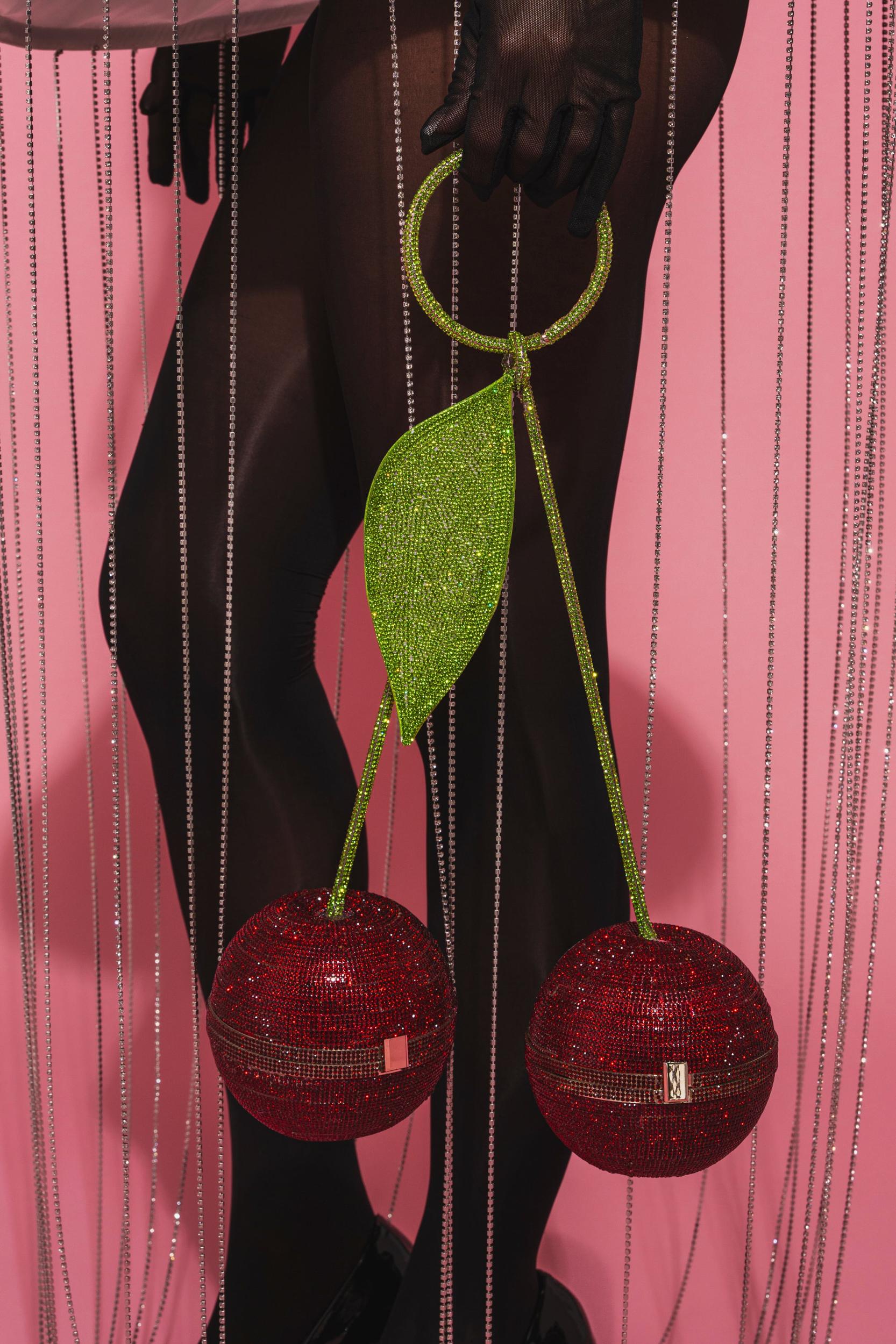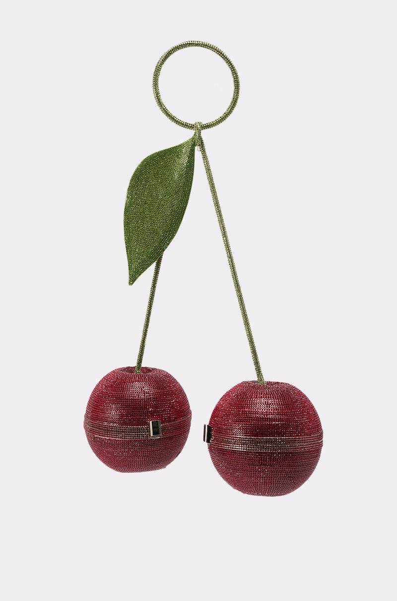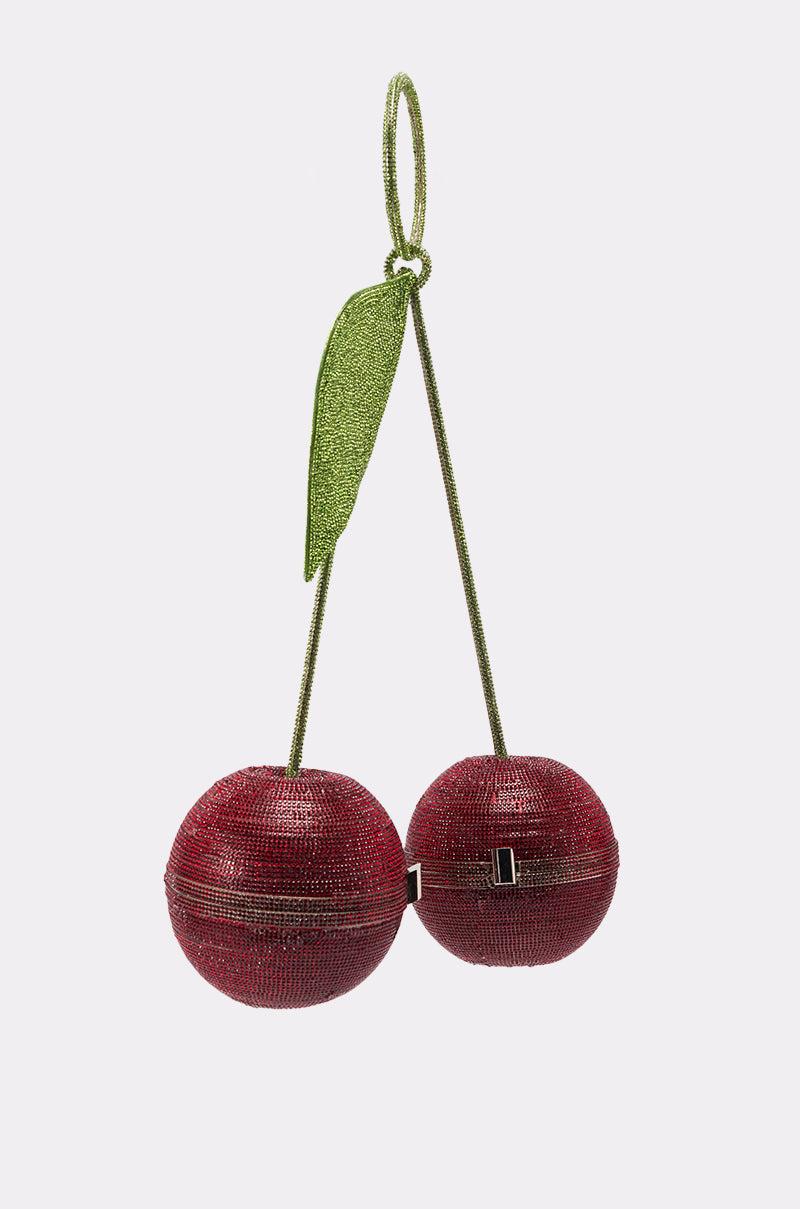 Ready to go all the way with The AKIRA Label Pop Mine Purse. This novelty piece features a cherry silhouette with two round, spherical vessels, connected by stem-like posts that lead into a circular top handle with a leaf-inspired accent. Each sphere features hinged, push-lock closures and satin-lined interiors, and completely adorned with glittering rhinestone embellishments for the cherry on top. - 100% Man-Made Materials- Imported (all measurements approximate from size O/S)- 16” Bag Circumference x 15” Height- 13” Top Handle Circumference x 4” DiameterProduct ID: 1063302