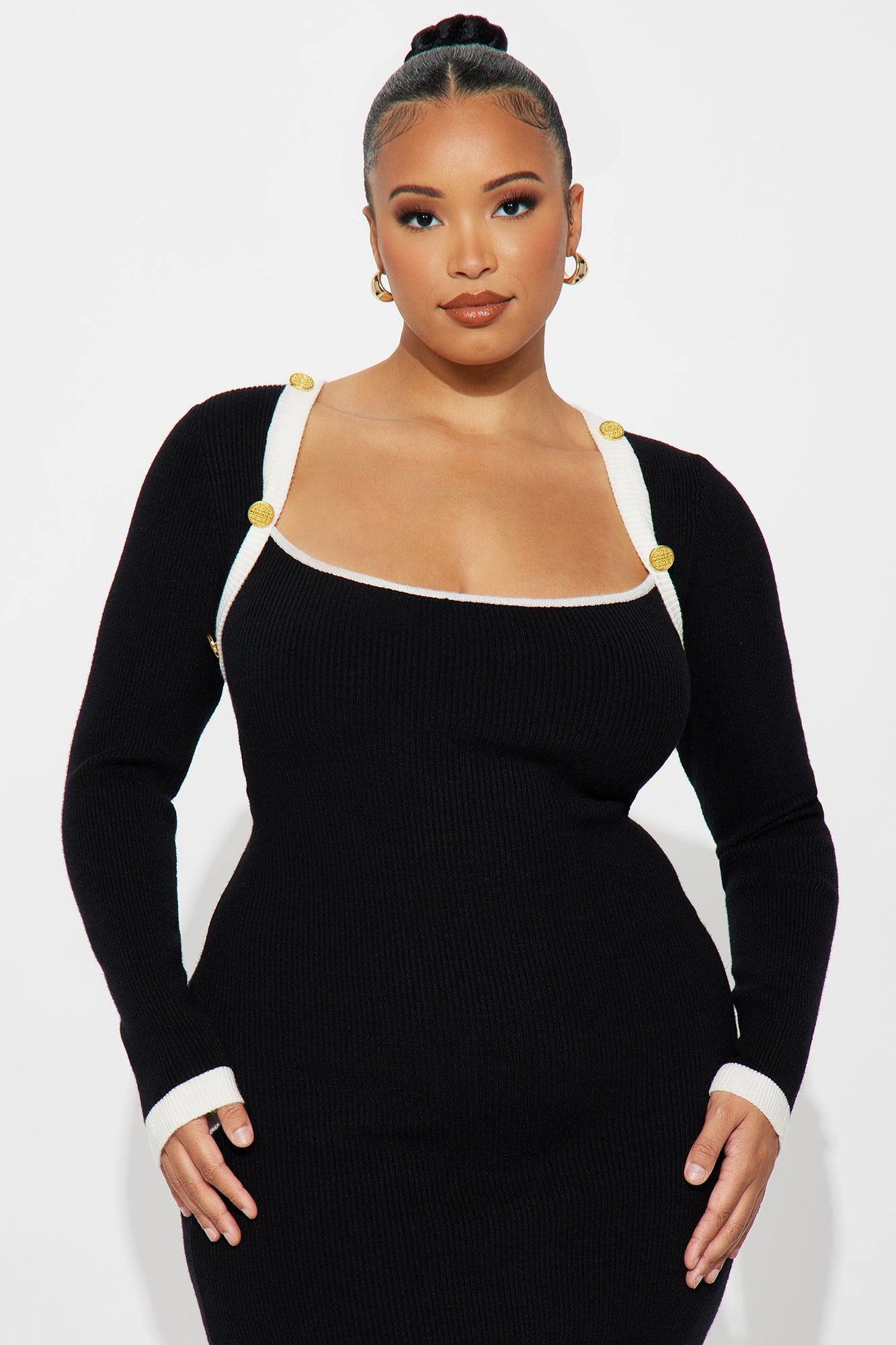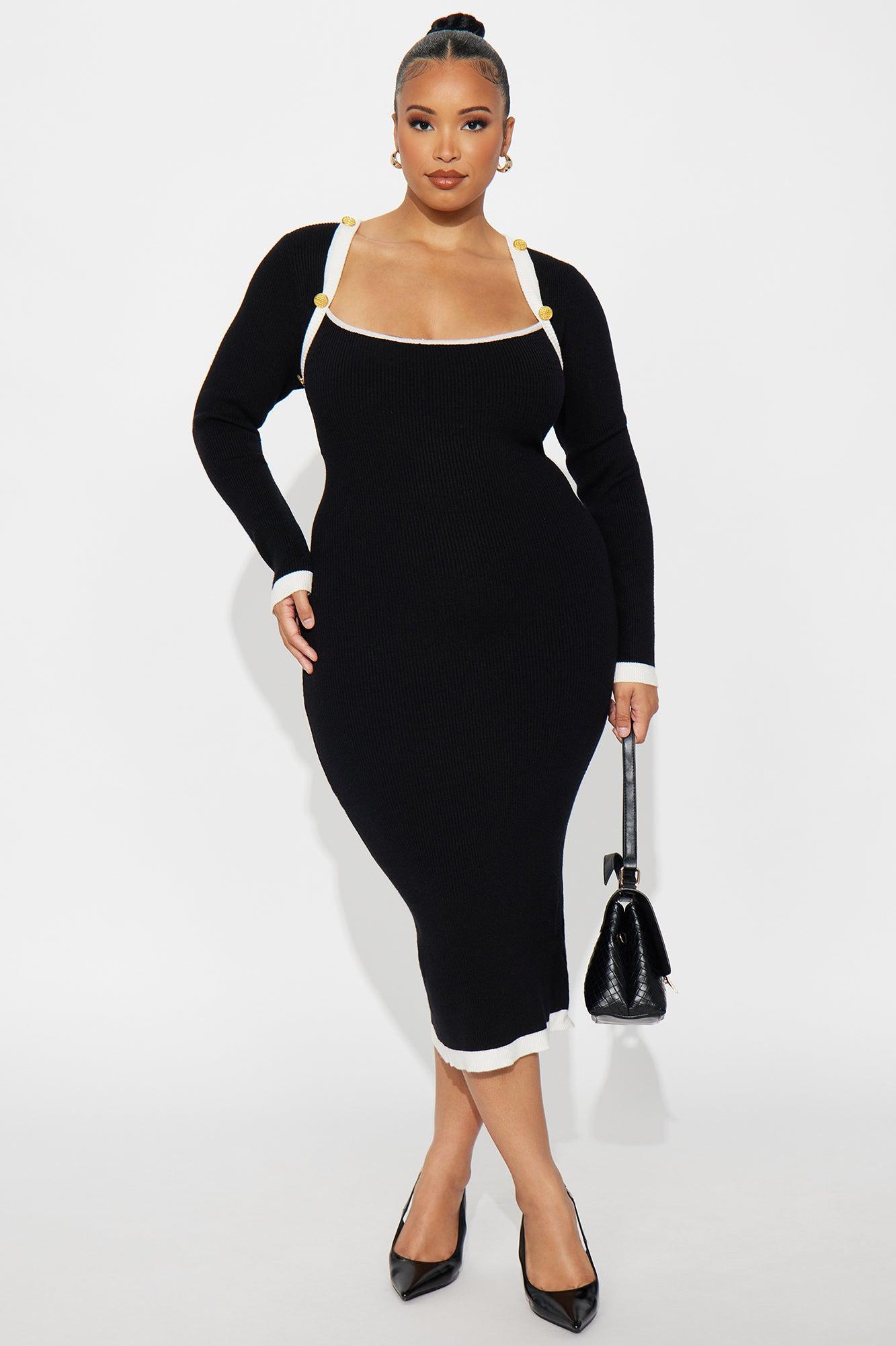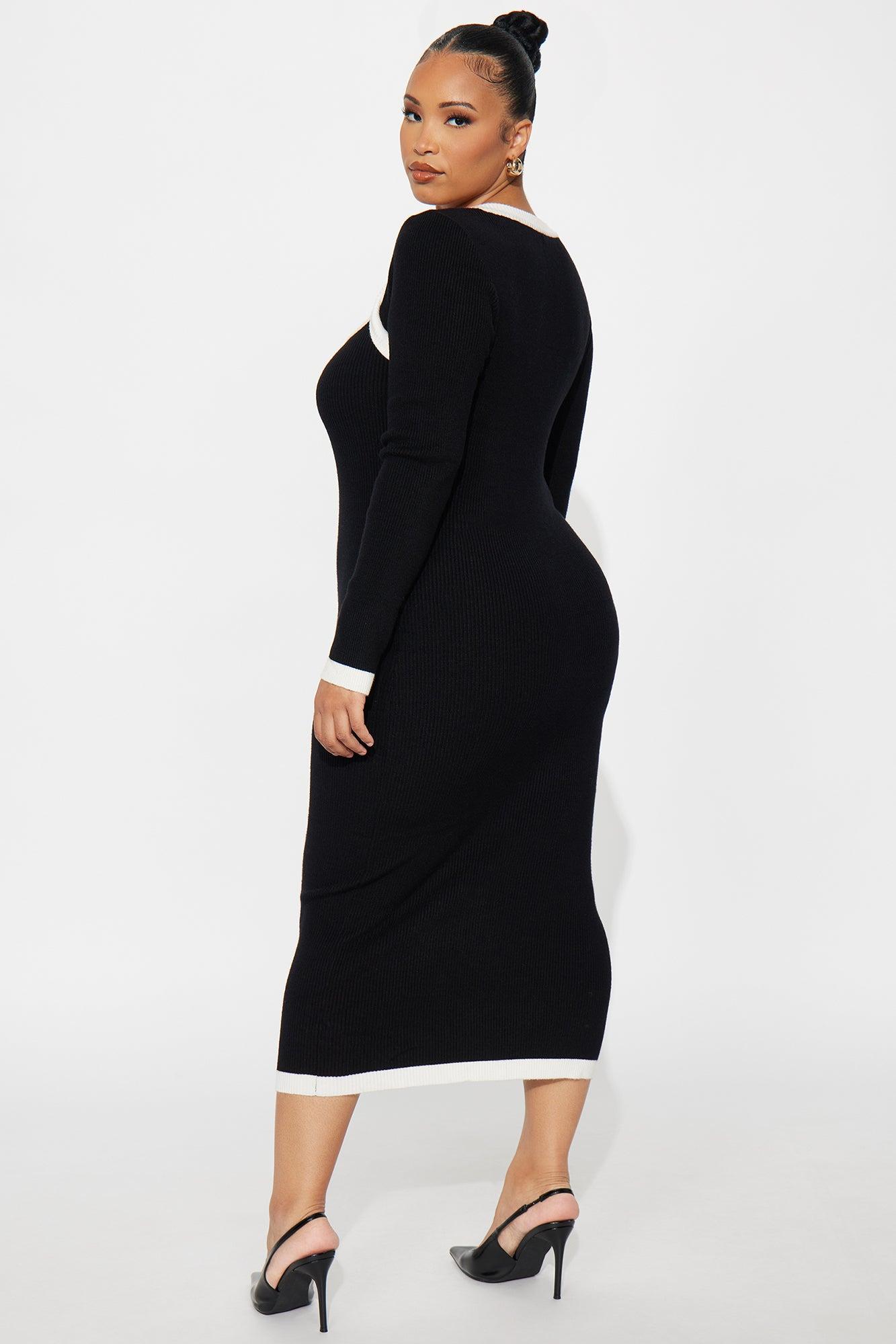 Poppy Dream Contrast Sweater Midi Dress - Black/White Female