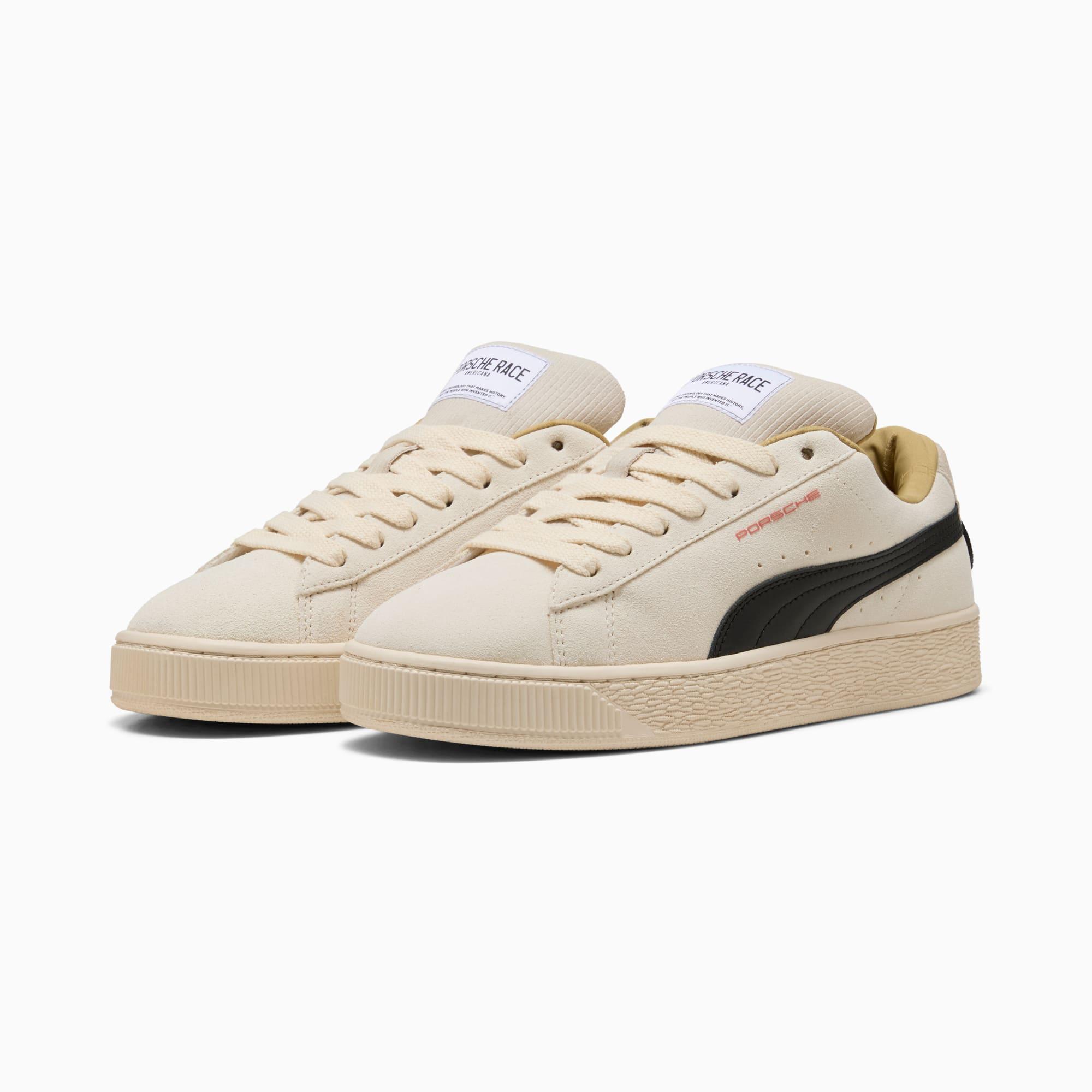 descriptionThese new Porsche Legacy pieces pay tribute to the brand's iconic motorsport heritage, combining premium materials with timeless design. These sneakers mix the legendary looks of the Suede XL with the spirit of high performance. They have a clean silhouette, buttery-soft upper, and chunky sole.Style: 309091_02Color: Alpine Snow-PUMA Blackfeatures & benefitsThe upper of the shoes is made with at least 20% recycled materials.detailsWidth: RegularToe type: RoundedClosure: LacesHeel type: FlatPUMA branding detailsPorsche Legacy branding detailsmaterials & careMaterial informationSockliner: 100% TextileOutsole: 100% RubberUpper: 97.21% Leather - cow, 2.79% TextileLining: 100% Textile