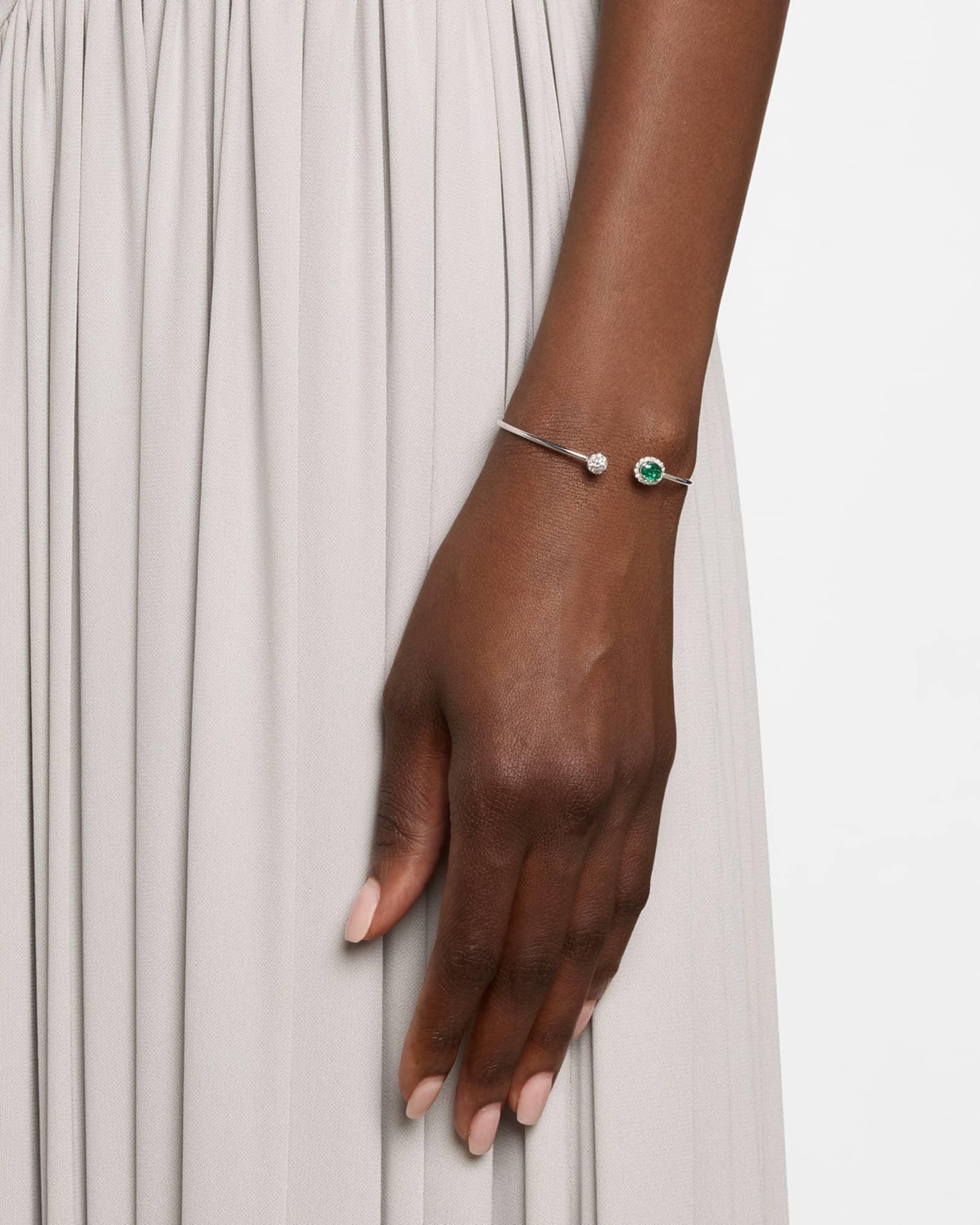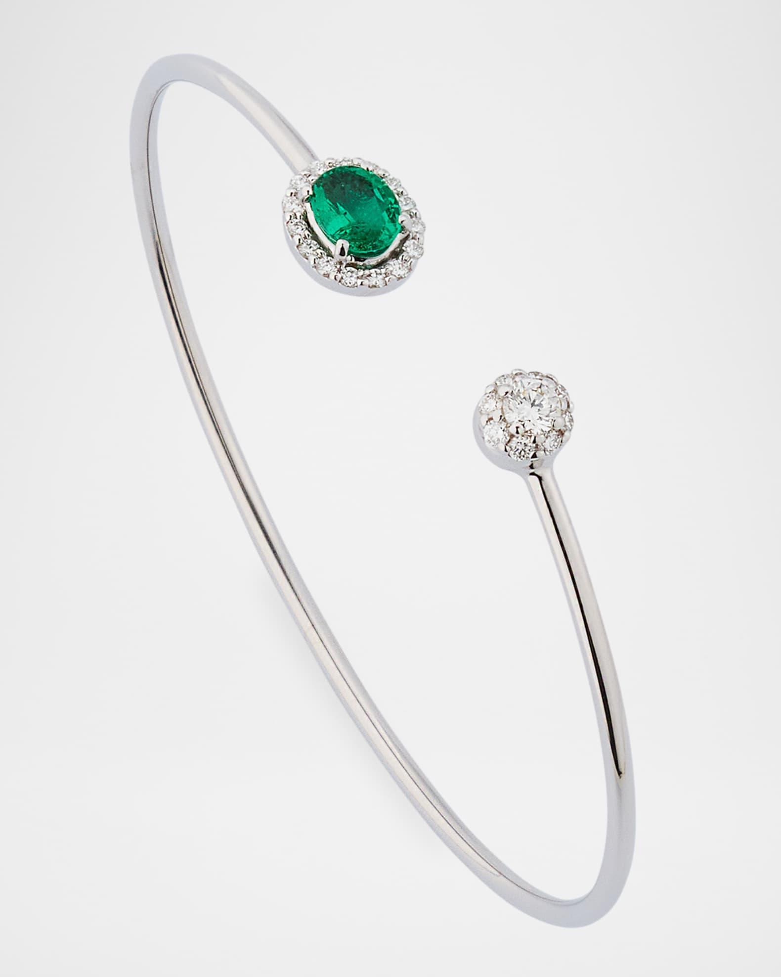 Krisonia bracelet from the Positano Collection 18-karat white gold Round white diamonds Oval emerald center 0.37 total diamond carat weight Slip-on style Made in Italy