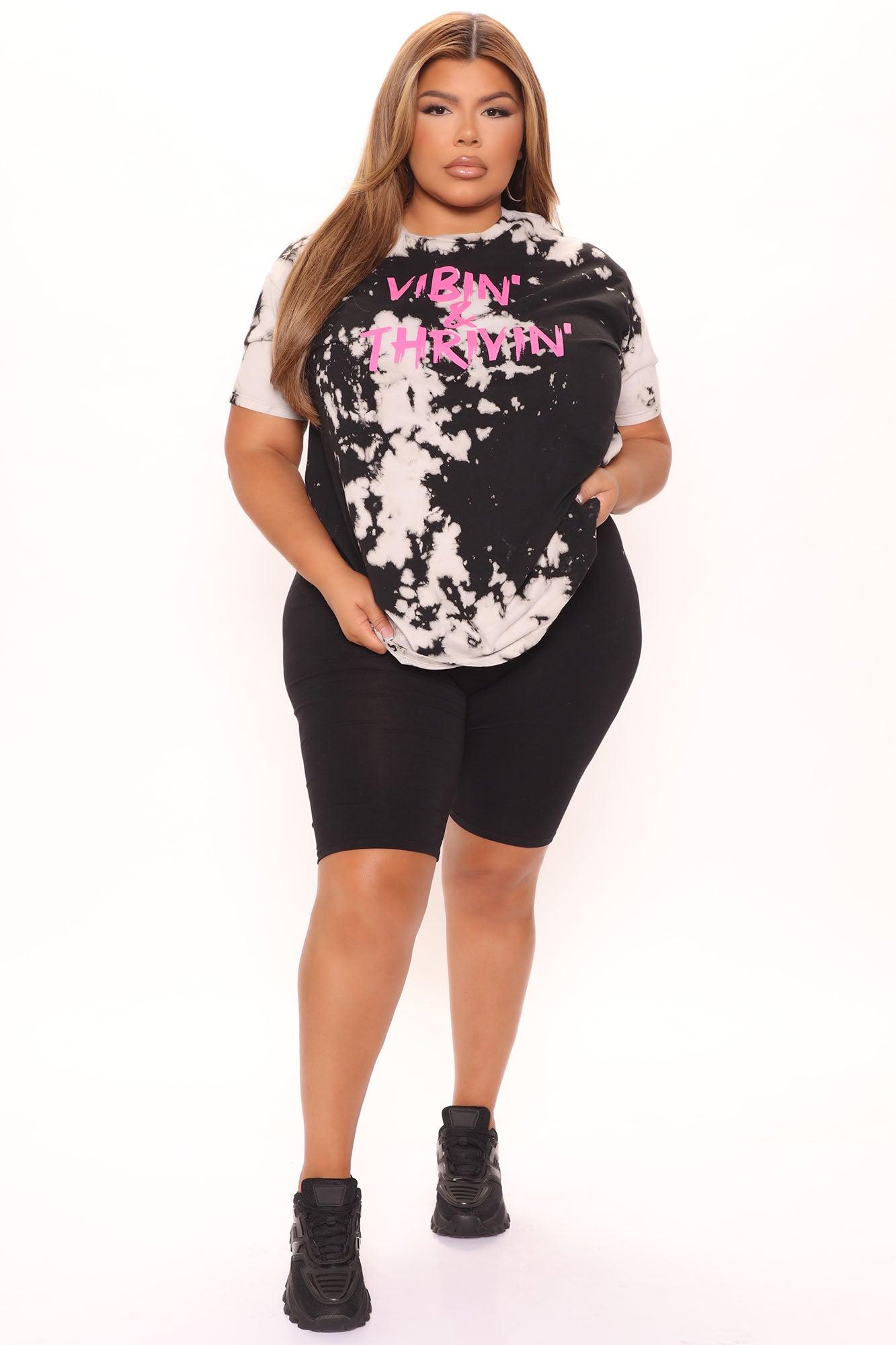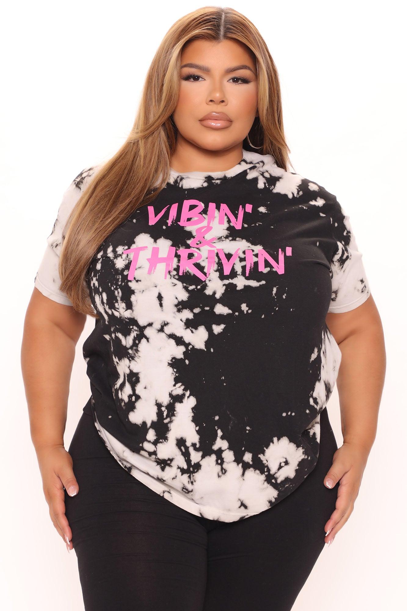 Available In Black/White. "Vibin' & Thirivin'" Verbiage Crew Neck Short Sleeve Tie Dye Disclaimer: Due To The Specialized Dye And Printing Process, A Difference In Saturation May Occur, Each Garment Is Unique 100% Cotton Imported