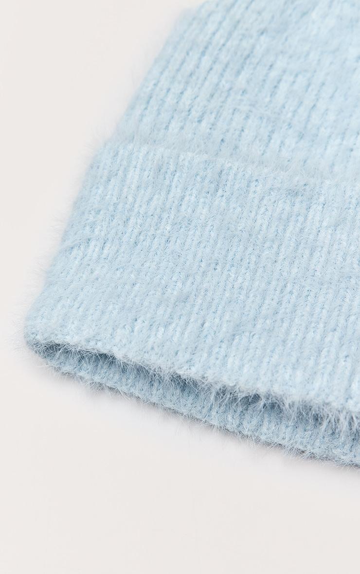 Stay playful with the powder blue brushed knit fold over beanie. Made from a powder blue brushed knit material, it features a fold over design, soft texture, and cosy finish. Pair with chunky boots and gold earrings for an effortlessly polished touch.p]:!mb-4inch>Category: AccessoriesProduct type: BeanieColor: Powder BlueMaterial: KnitOccasion: Day