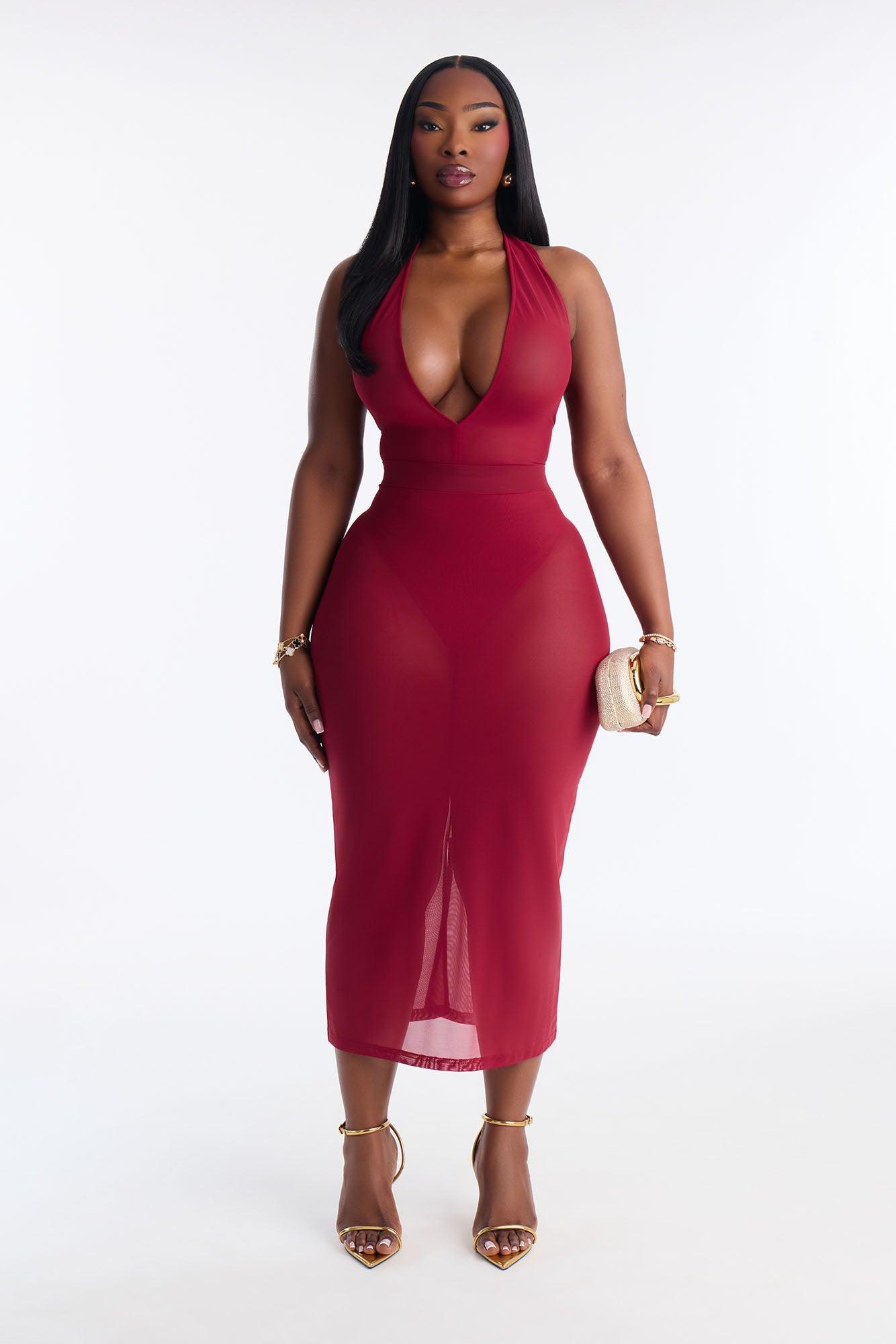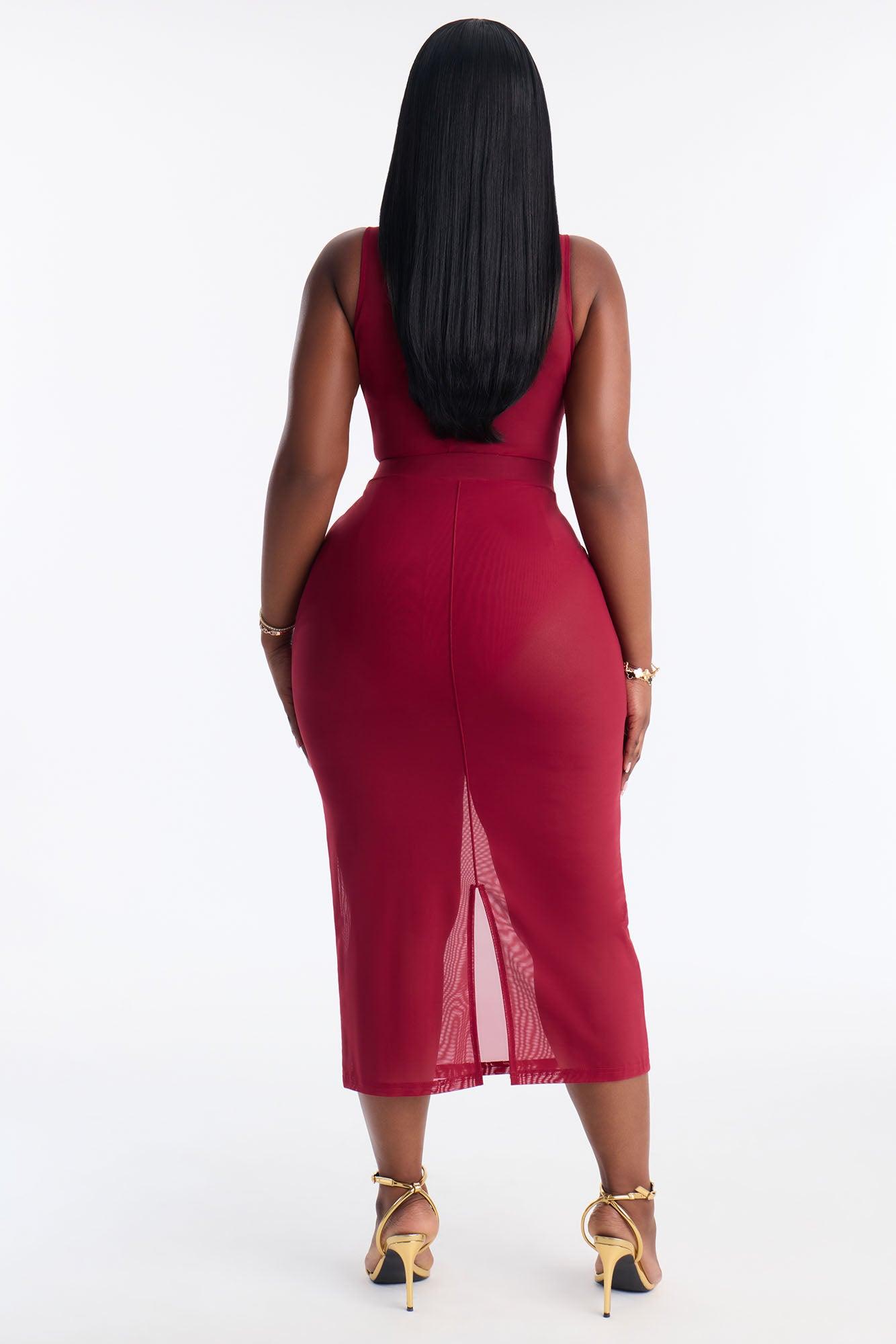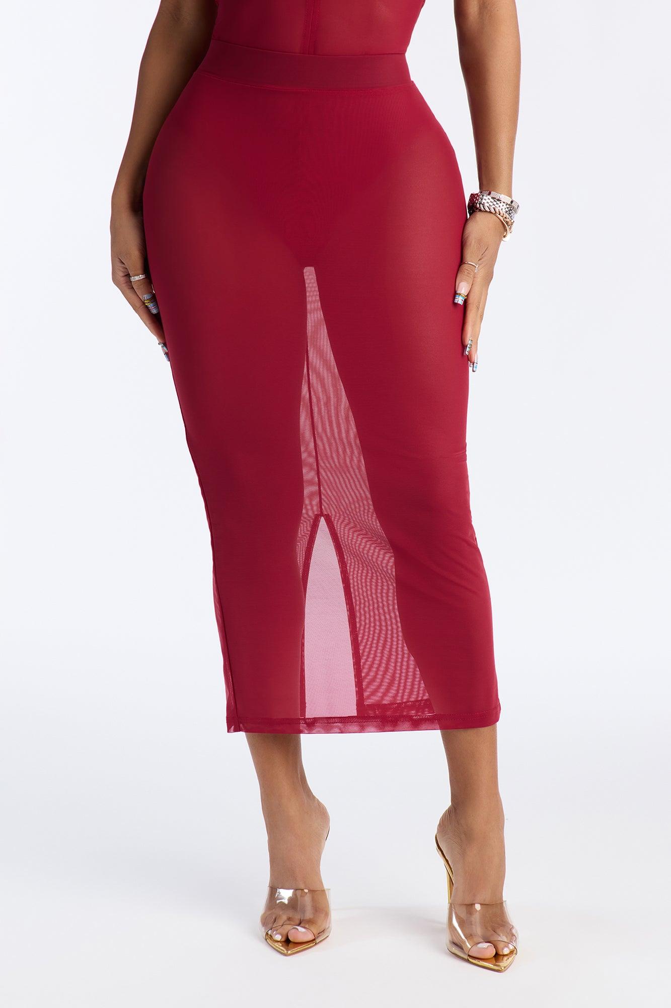 Power Mesh Midi Pencil Skirt - DarkRed Female