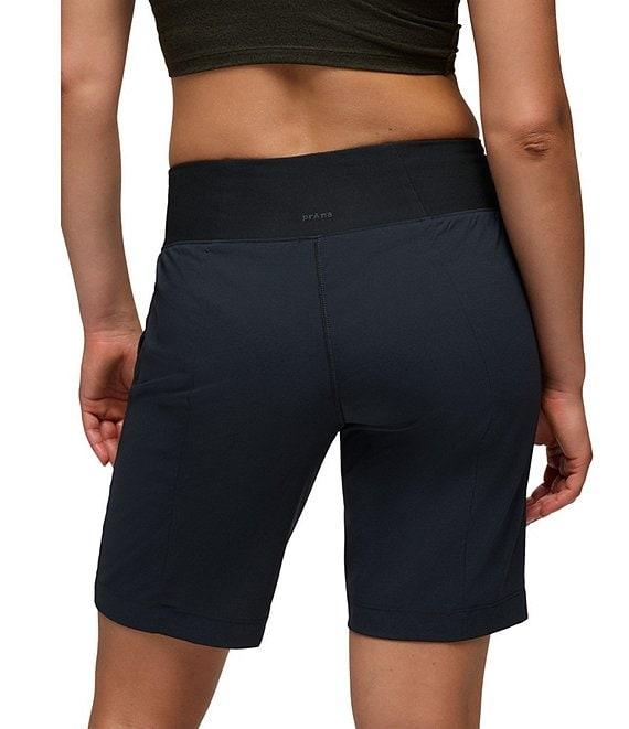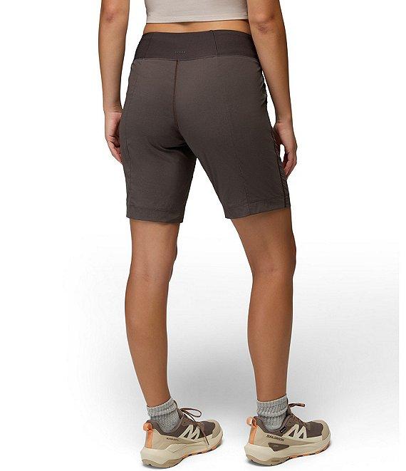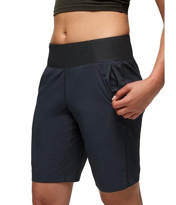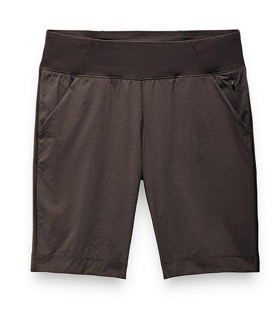 From prAna, these shorts feature: 4-way stretch fabrication Flat front silhouette Mid rise waist Ultra comfortable knit waistband Front pockets Hidden pocket with concealed zipper UPF+ 50 sun protection Standard fit Pull-on construction Approx. 9.5" inseam Nylon/polyester/elastane Machine wash Imported.