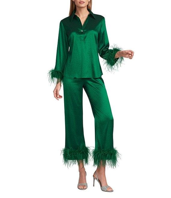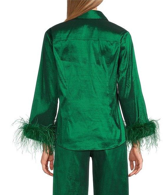 From Preston & York, this blouse features: Stretch Taffeta Fabrication Collar Neckline 3/4 Sleeves with French Cuff 1 Pearl Shank Button Closure Feather Sleeve Detail Approx. 25.25" length Polyester/Nylon/Elastane Fiber Content Spot Clean Imported. Dillard's Exclusive.