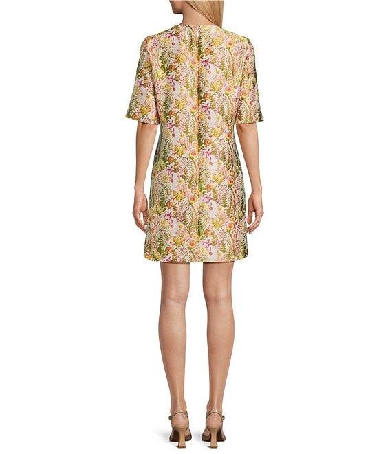 Preston & York Maris Floral Round Neck Elbow Sleeve Brocade Dress