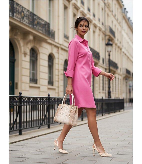 Preston & York Thea Taffeta 3/4 Sleeve Point Collar Dress