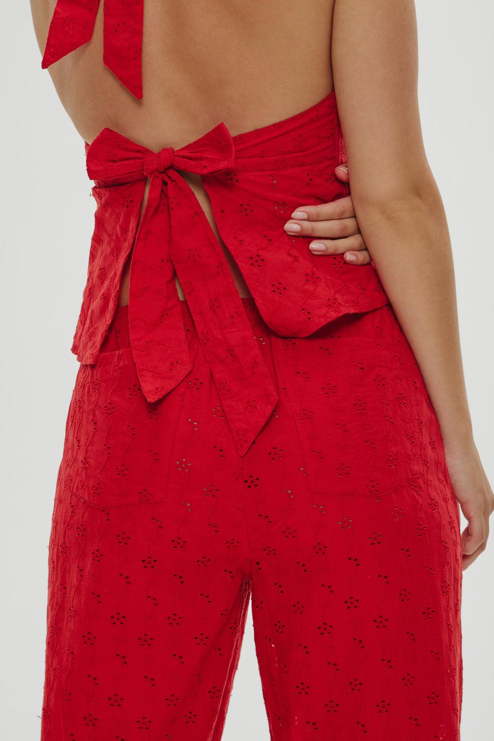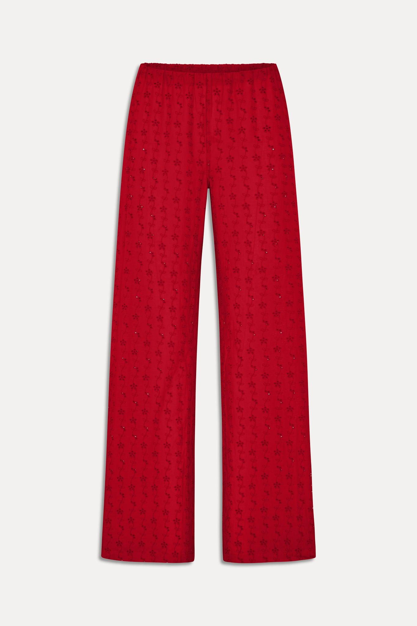 The Princess pants are crafted from cotton eyelet for an airy feel you’ll want to live in. Finished in delicate floral embroidery, they pair back with the matching Princess blouse or your favorite summer tee. Details 100% cotton eyelet fabric Wide leg, relaxed fit Invisible elastic waistband Back pockets Custom floral eyelet embroidery throughout
