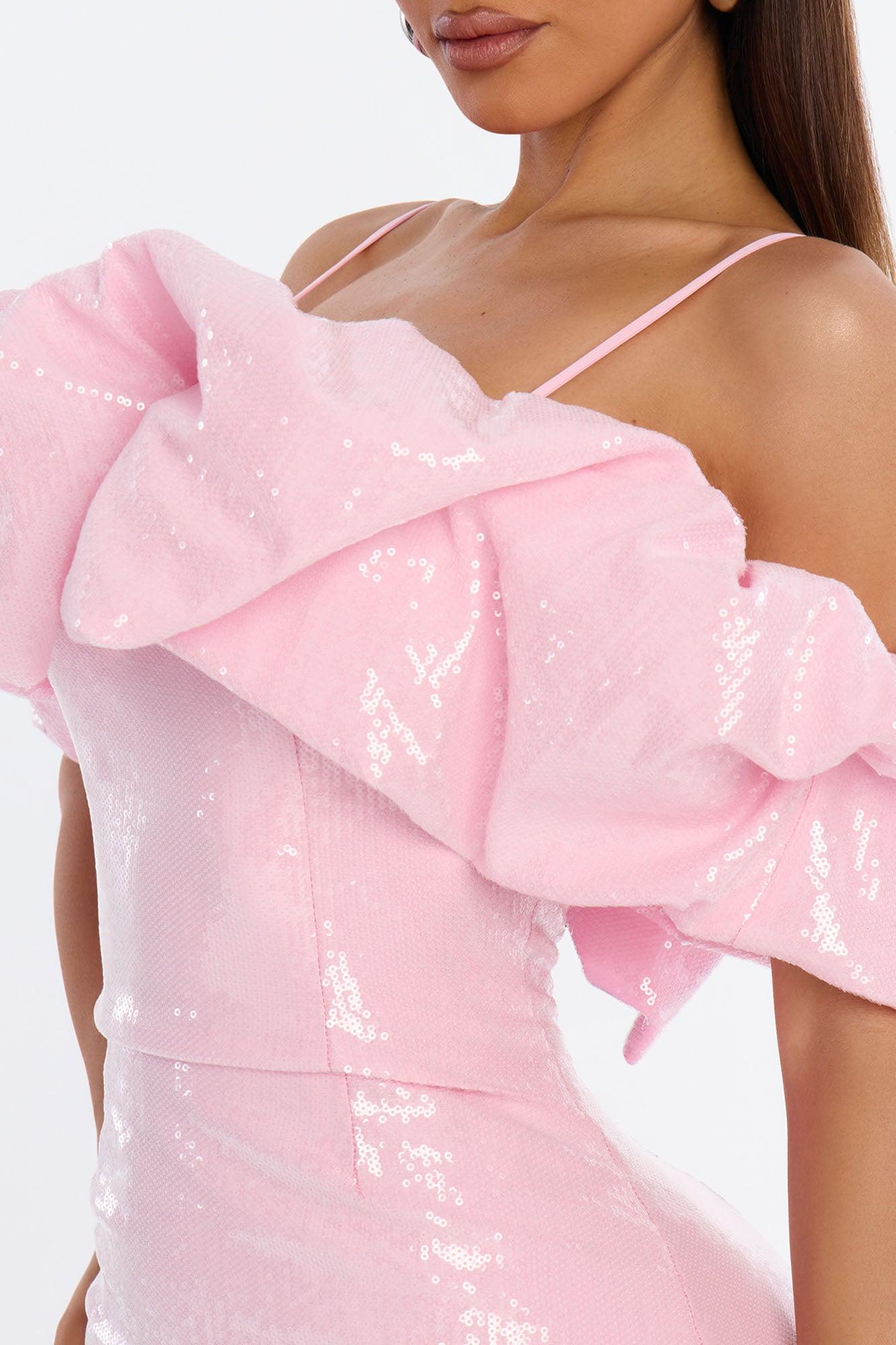Princess Vibes Ruffle Sequin Mini Dress - Light Pink Female