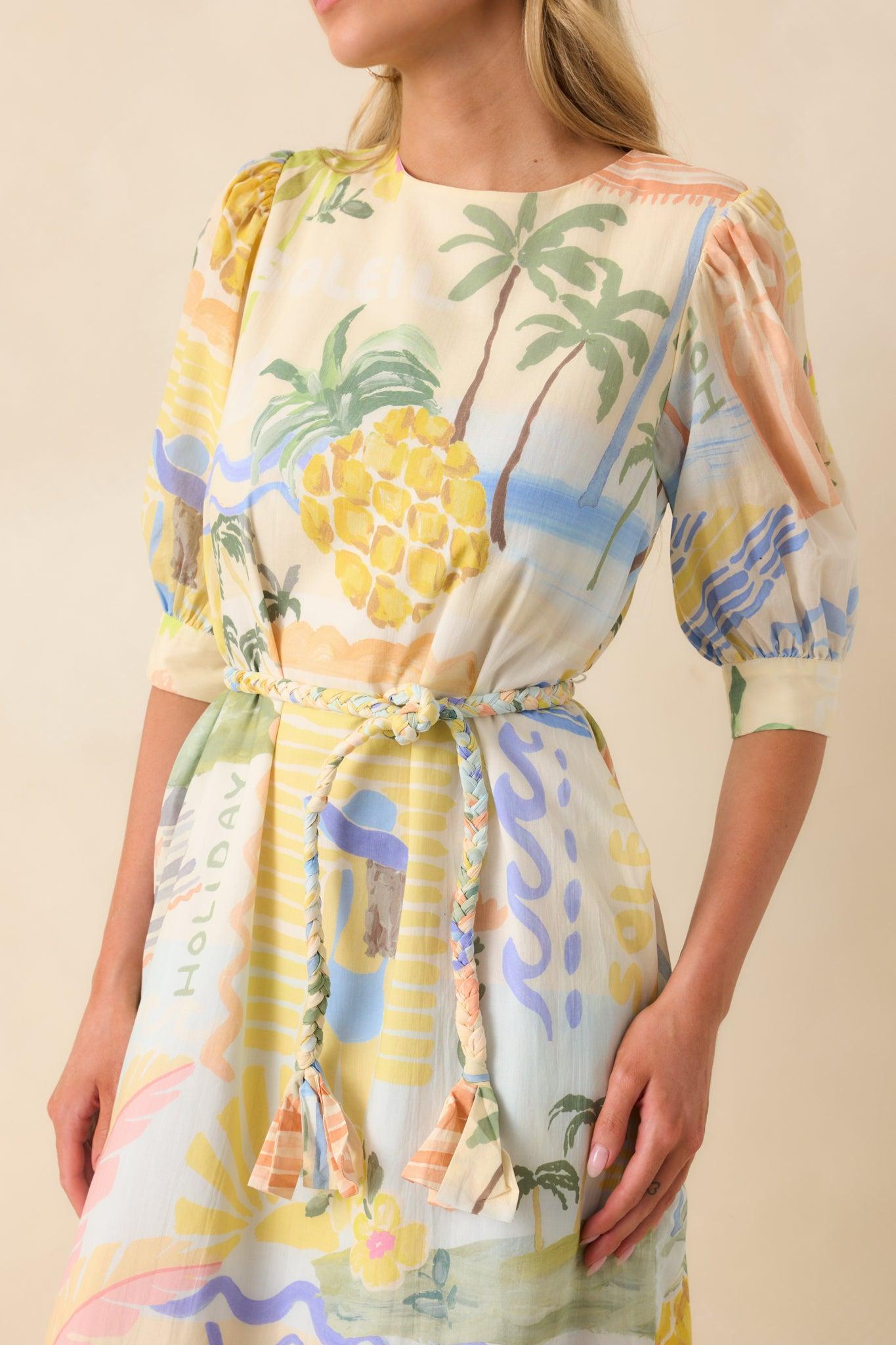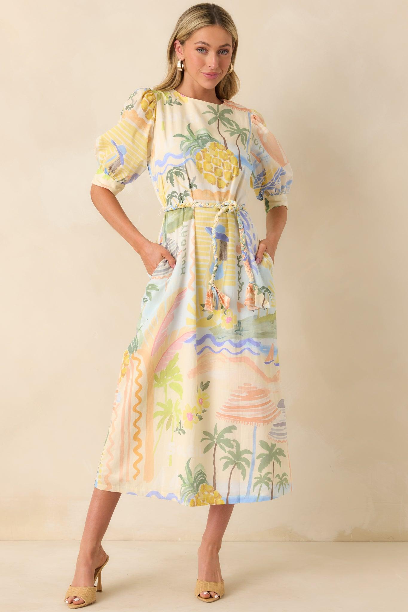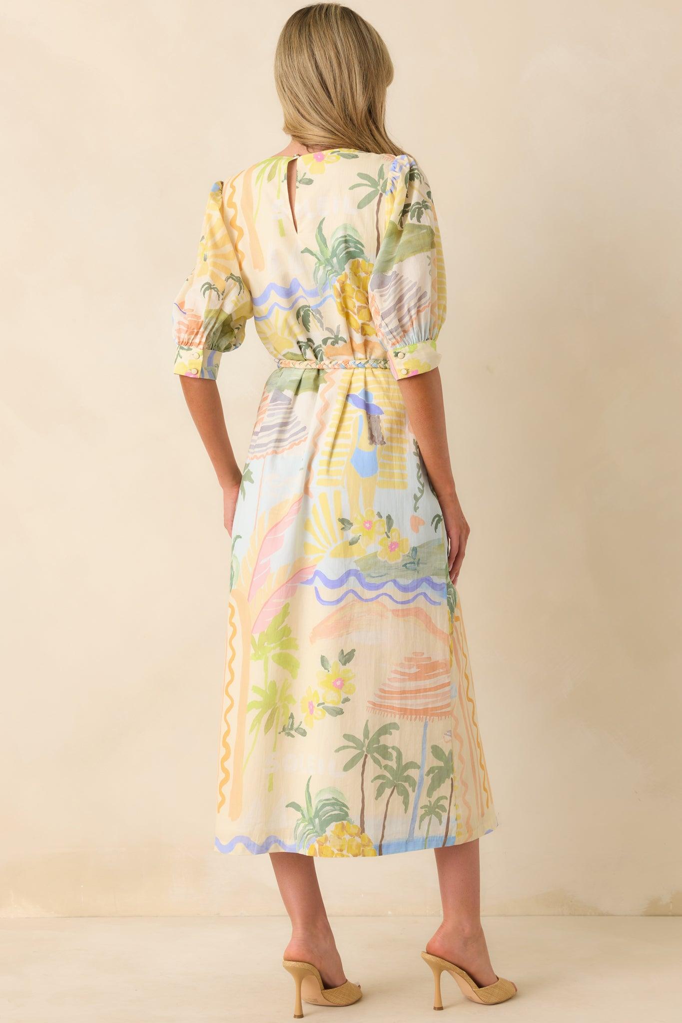 The Prosperina Brynne Multi Print Cotton Midi Dress is all about bringing cheerful color and timeless charm to your day. With its lively mix of prints and breezy feel, it’s perfect for casual gatherings, market strolls, or any moment you want your style to feel vibrant and full of character. This midi dress features a round neckline, half sleeves, functional button cuffs, optional braided self-tie belt, back keyhole button closure, full white lining, and functional pockets. 100% Cotton Lined: 100% Cotton Wash inside out, with cold water on a gentle cycle Use mild detergent & avoid bleach Hand wash cold & air dry preferred Manufactured in China & Designed in The USA Model is 5'8" & is wearing an x-small