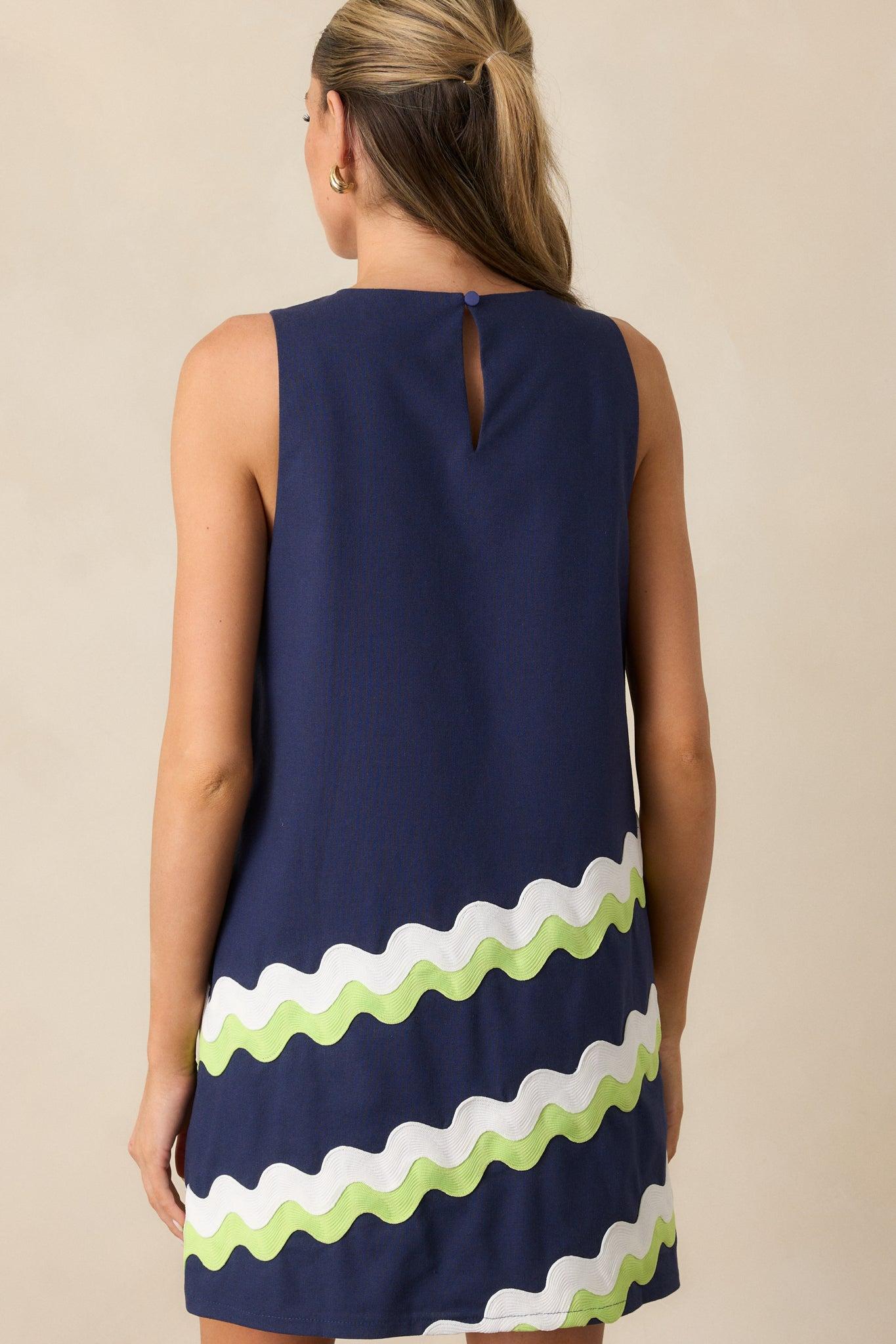 The Prosperina Catania Navy Cotton Shift Dress carries an understated charm that feels instantly polished. Its clean lines and classic hue make it the perfect choice for days when you want to look effortlessly put together. This navy mini dress features a round neckline, back keyhole button closure, sleeveless design, lime green and white ricrac stripes, full navy lining, and functional pockets. 70% Cotton & 30% Linen Lined: 100% Cotton Wash inside out, with cold water on a gentle cycle Use mild detergent & avoid bleach Hand wash cold & air dry preferred Manufactured in China & Designed in The USA Model is 5'6" & is wearing an x-small