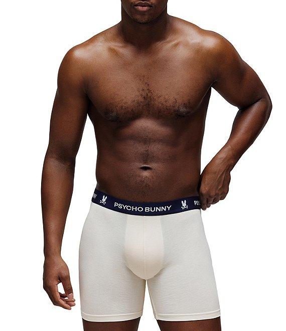 From Psycho Bunny, these boxer briefs feature: Approx. 5.5" inseam Solid tone Jacquard-woven logo at waistband 3-pack Stretch cotton-modal blend jersey Cotton/modal/elastane Machine wash/tumble dry Imported.