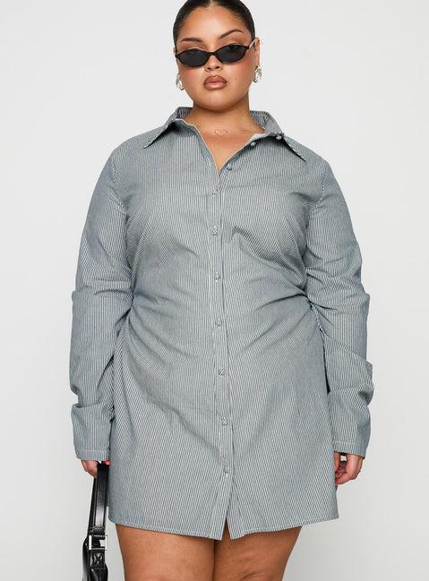 Publicity Long Sleeve Mini Dress Blue Pinstripe Curve