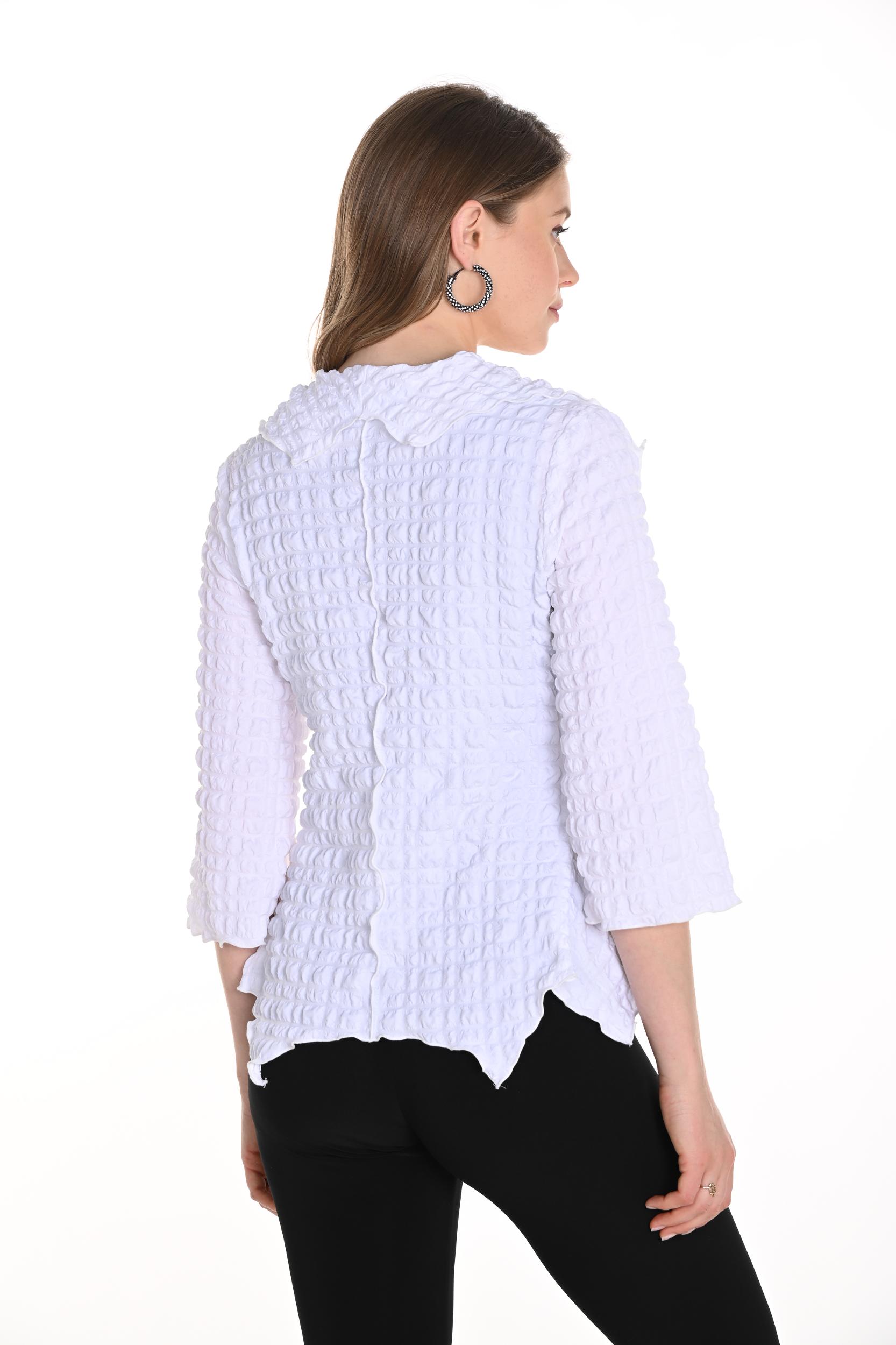 ntroducing the Frank Lyman open-front cardigan, a perfect blend of casual and chic style. With its relaxed fit and hip-length cut, this shawl collar cardigan features elegant ruffles and a draped design. Ideal for both casual outings and home lounging, its plain pattern and 3/4 straight sleeves add a touch of sophistication to your everyday wardrobe.