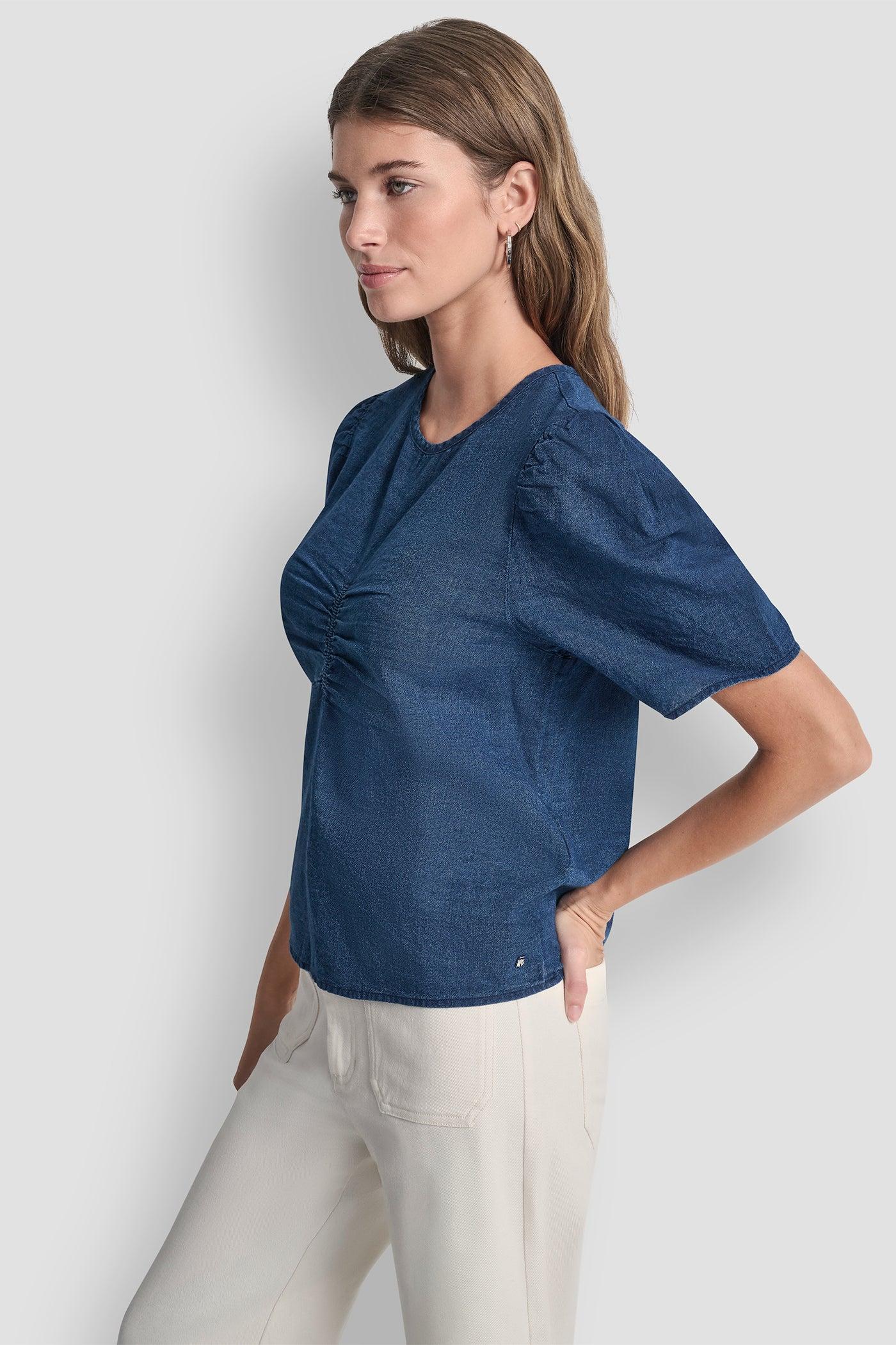 PUFF SLEEVE RUCHED FRONT SHIRT