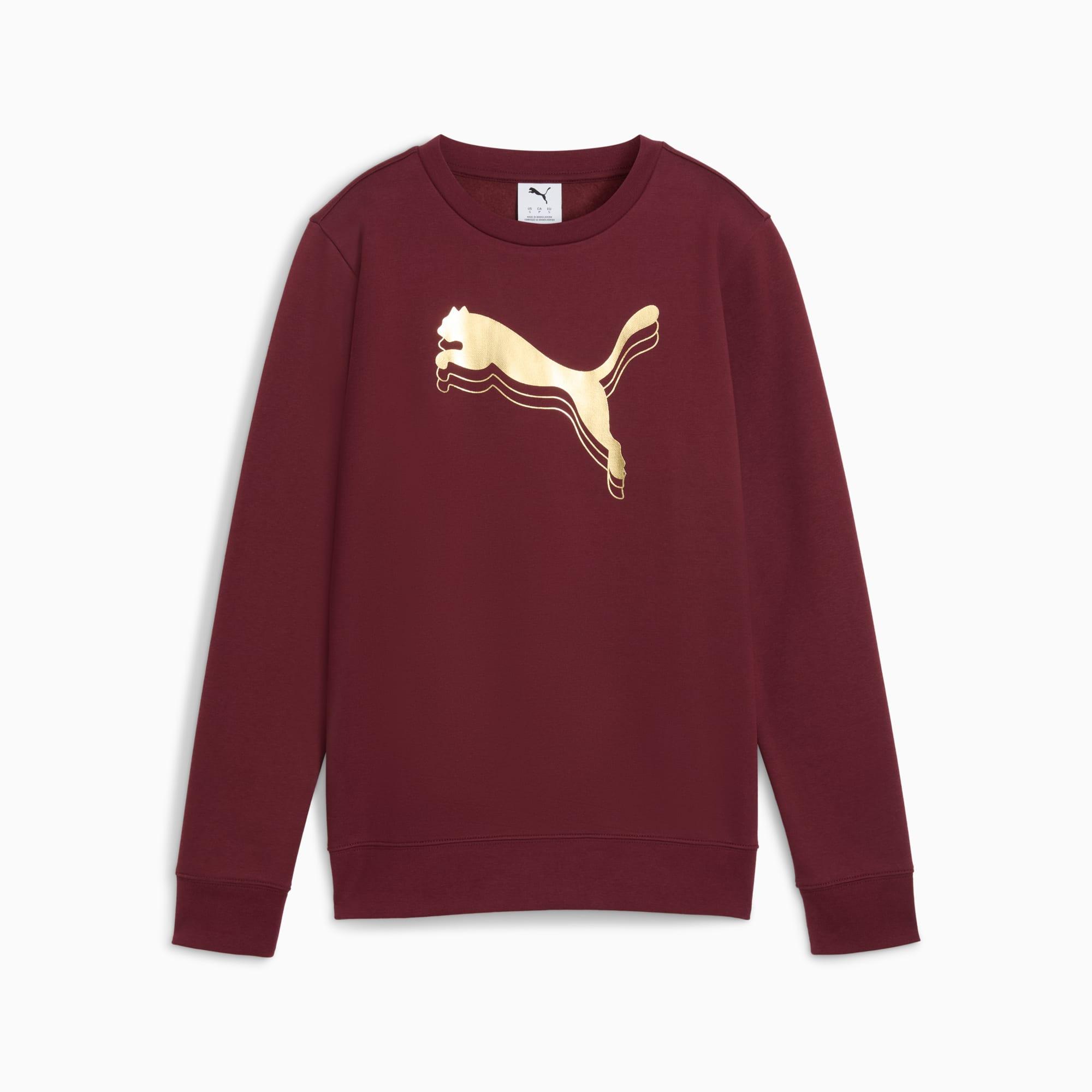 descriptionStylish, comfortable, and always on point — PUMA Essentials are designed for laid-back days. Whether you're relaxing, grabbing a coffee, or on the go, these pieces provide the perfect mix of comfort and style. Simple, versatile, and made to keep you feeling great all day long.Style: 688092_96Color: Ruby Shimmer-metallic goldfeatures & benefitsMade with at least 50% recycled materials.detailsFit: RegularMain material: FleeceNeck: Crew neckLong sleevesLength: Regular