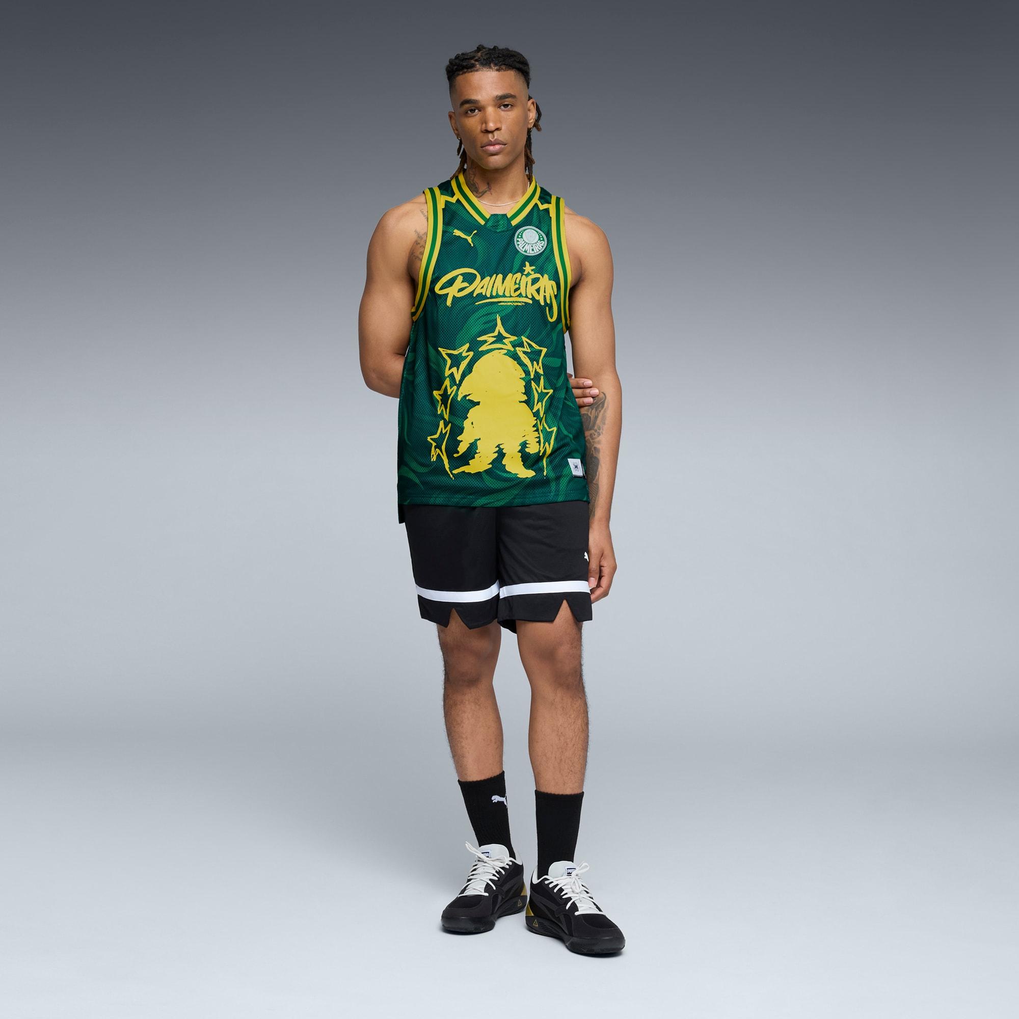 Suit up in winning style with the PUMA HOOPS x SE Palmeiras basketball jersey. This jersey brings together basketball-inspired design and the proud heritage of SE Palmeiras, perfect for fans and players alike. Crafted from high-quality fabric, it's built for comfort whether you're on the court or showing your club pride in the stands.Made with 100% recycled material excluding trims & decorationsRegular fitMeshRegular lengthCrew neckSleevelessSE Palmeiras branding detailsPUMA HOOPS branding details