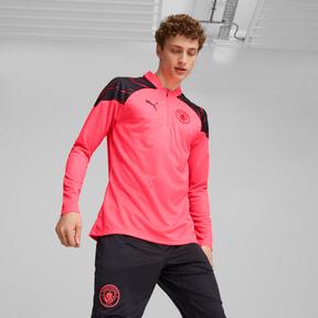 Cityzens, light up the pitch just like the pros in this Man City training quarter-zip that's crafted for soccer excellence. Expertly designed with a lightweight construction and moisture-wicking fabrication, youâll be kicking screamers and practicing your sprints in the ultimate comfort â just like the first team. | PUMA Manchester City Soccer Men's Quarter-zip in Dark Blue, Size M