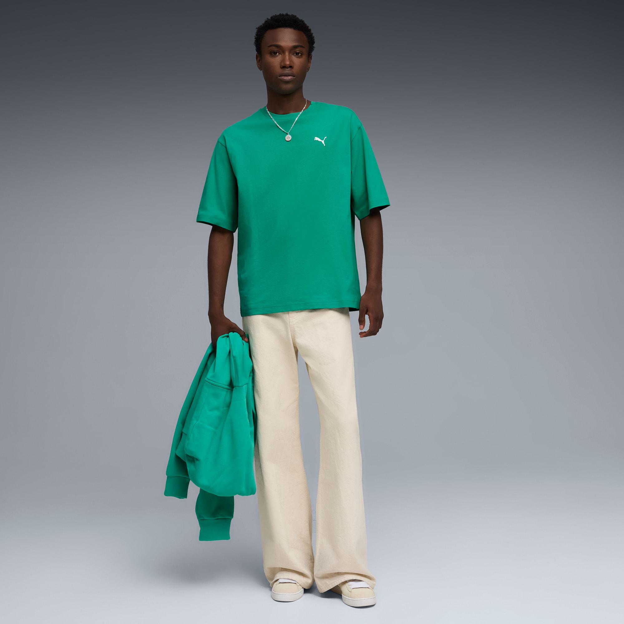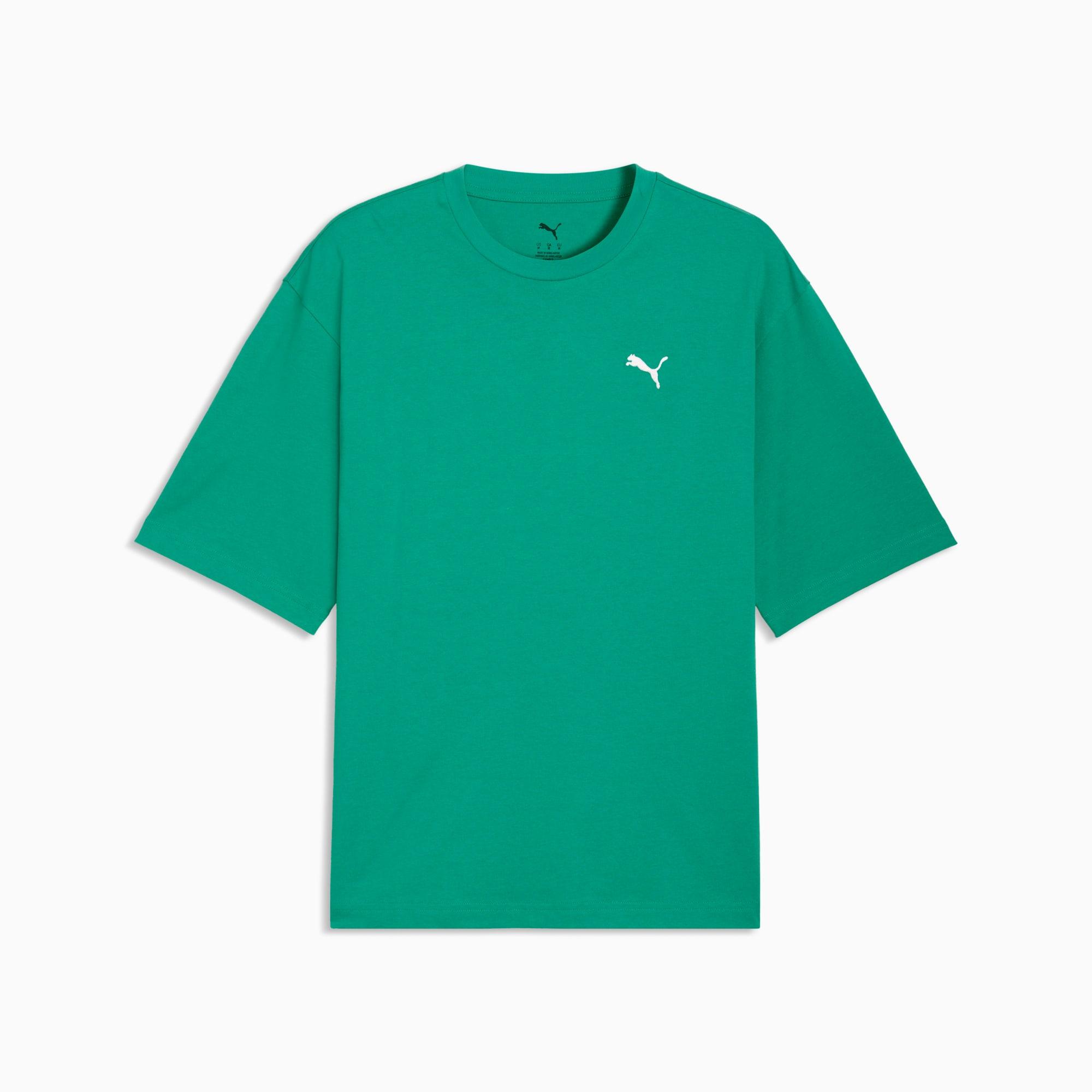 descriptionEmbrace effortless vibes with this boxy tee. It's perfect for those laid-back days or spontaneous adventures. Show your PUMA pride and make every moment count in this must-have essential.Style: 629645_40Color: Vibrant Greenmeasure & sizeModel informationModel is 6' 1" tall and is wearing size M.features & benefitsMade with at least 20% recycled cottondetailsBoxy fitSingle jersey fabricRegular lengthCrew neckShort sleevesPUMA branding detailsmaterials & careMaterial informationShell: 100% cottonRib: 80% cotton, 20% polyesterCare instructionsWash and iron inside outUse detergent for coloursWash with similar coloursExclusive of DecorationDo not dry clean