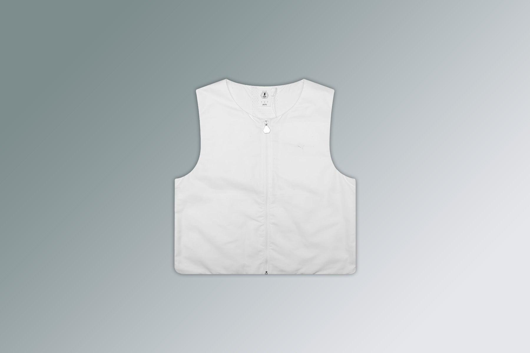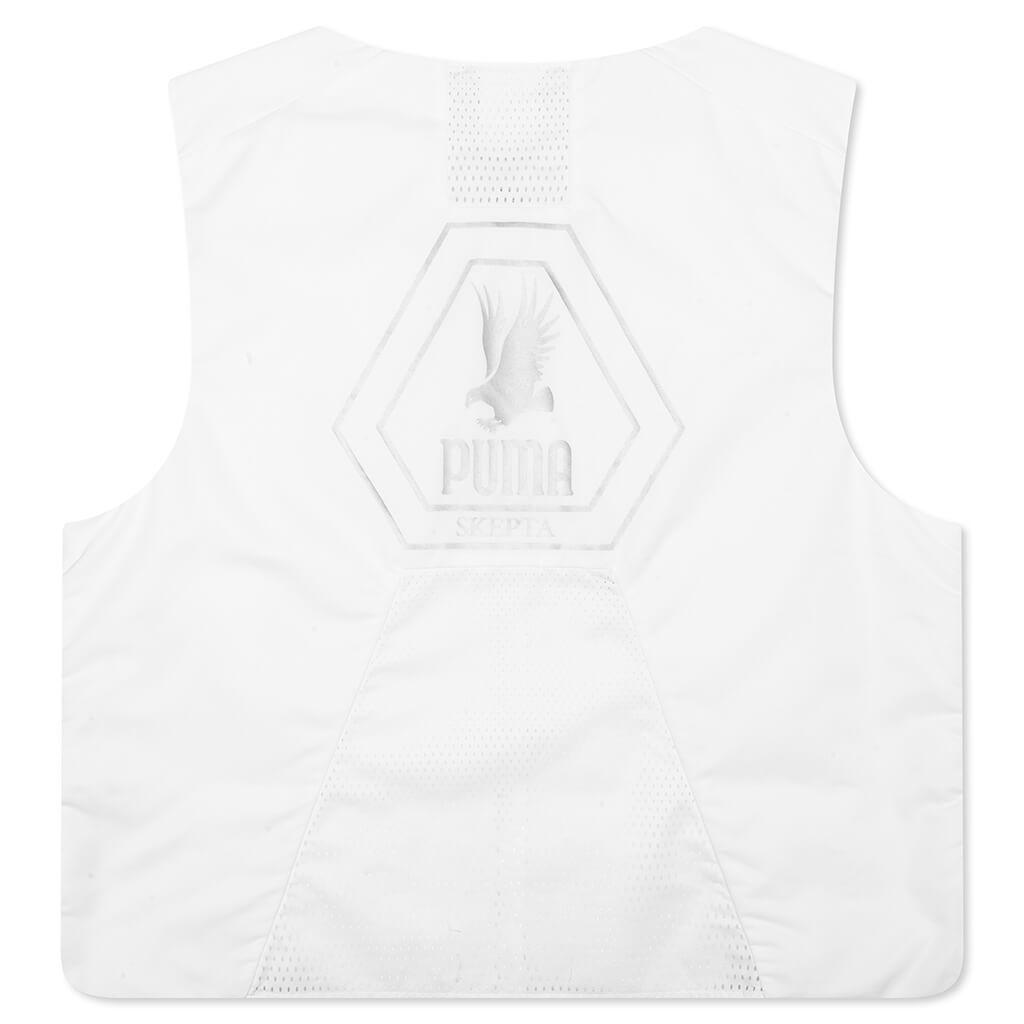 PUMA and Skepta come together again to create another capsule featuring apparel, sneakers, and accessories. The Puma x Skepta Vest combines Skepta’s iconic aesthetics with elevated streetwear. Made with polyester and nylon, allowing comfort and durability. Featuring a sleeveless design, with a full zipper closure and front zipper side pockets. A PUMA x Sketpa screen printed graphic on the back finishes the look. Shell: 100% polyester Lining: 100% nylon Full zipper closure Front zipper side pockets PUMA x Skepta screen-printed graphic Style No: 633721-02