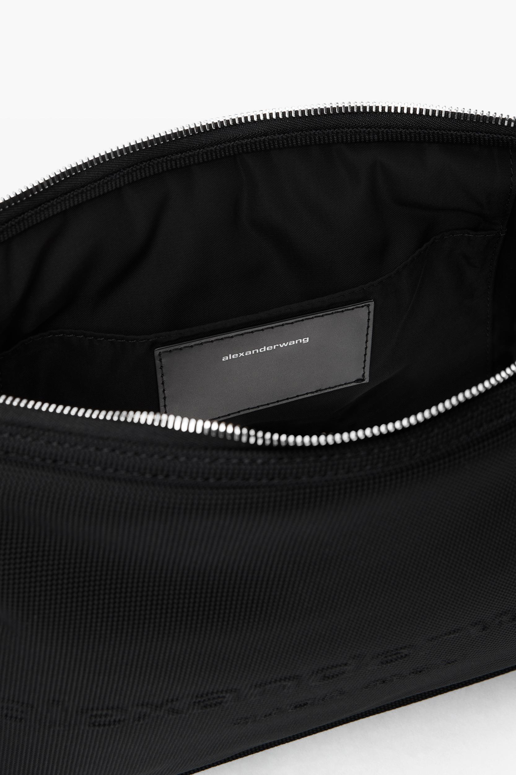Crafted of black nylon canvas, this Punch shoulder bag showcases a tonal raised logo at the center. Detachable shoulder straps complete this rectangular silhouette.