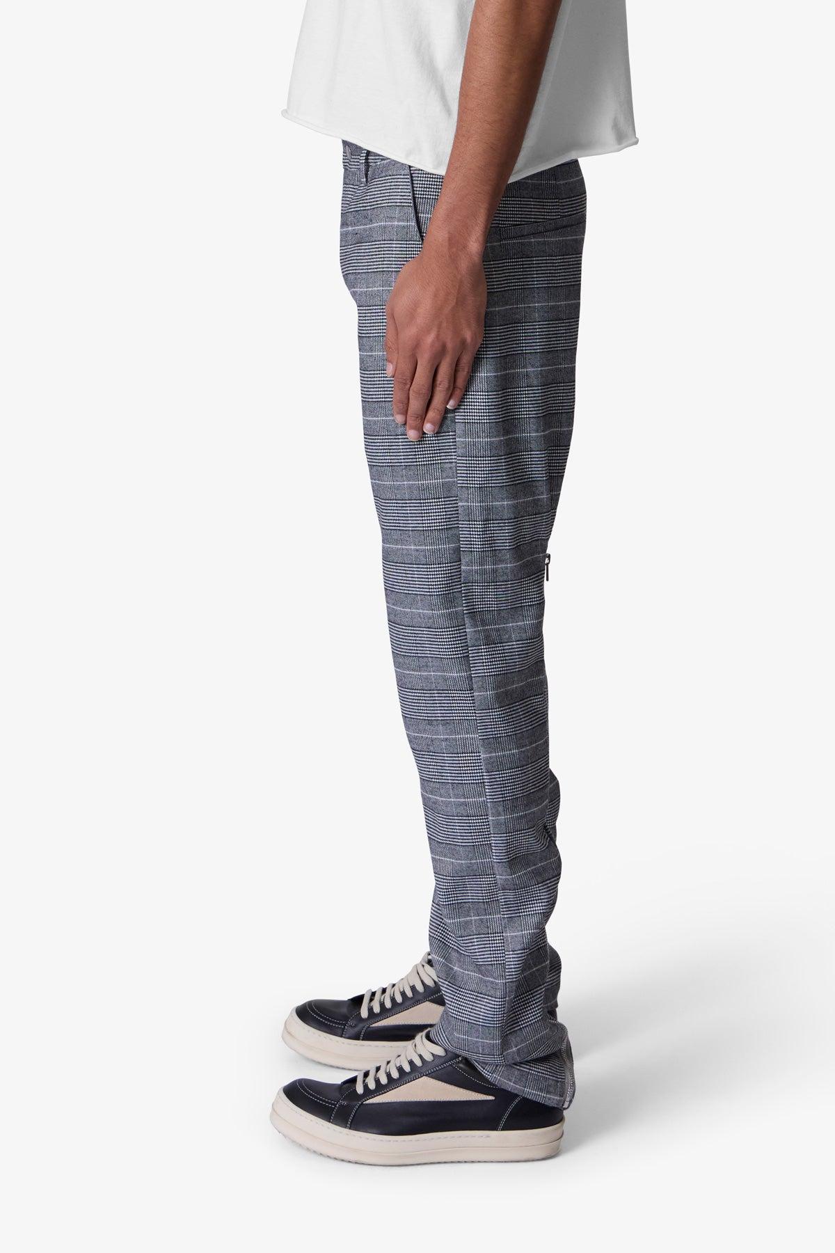 the Punk Zip Trouser Pants are designed with a baggy, relaxed fit throughout, featuring welt pockets at the outseam and patch pockets on the back, and is constructed from a custom developed plaid synthetic blend fabric. details relaxed fit 70% polyester 30% viscose model is 6’1, 140 lbs and wears a size medium