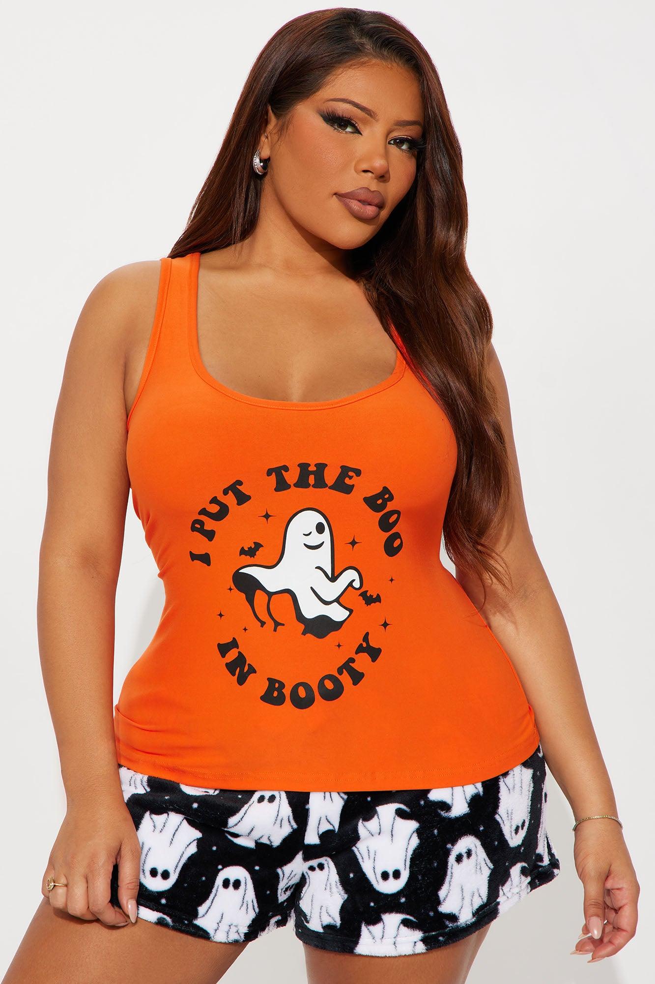 Put The Boo In Booty Halloween PJ Short Set - Orange/combo Female