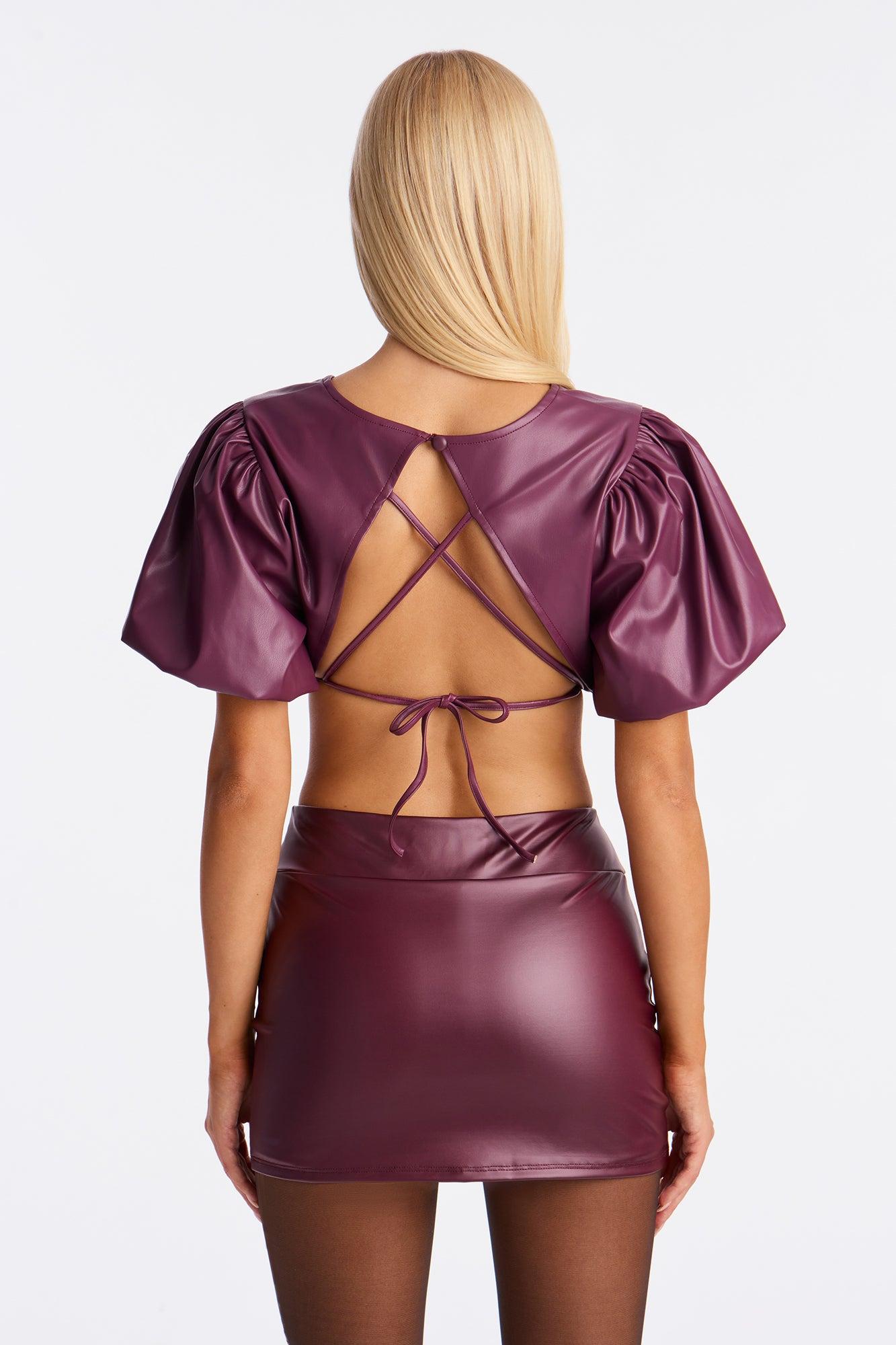 Put Your Feelings Aside Cropped Faux Leather Top - Eggplant Female