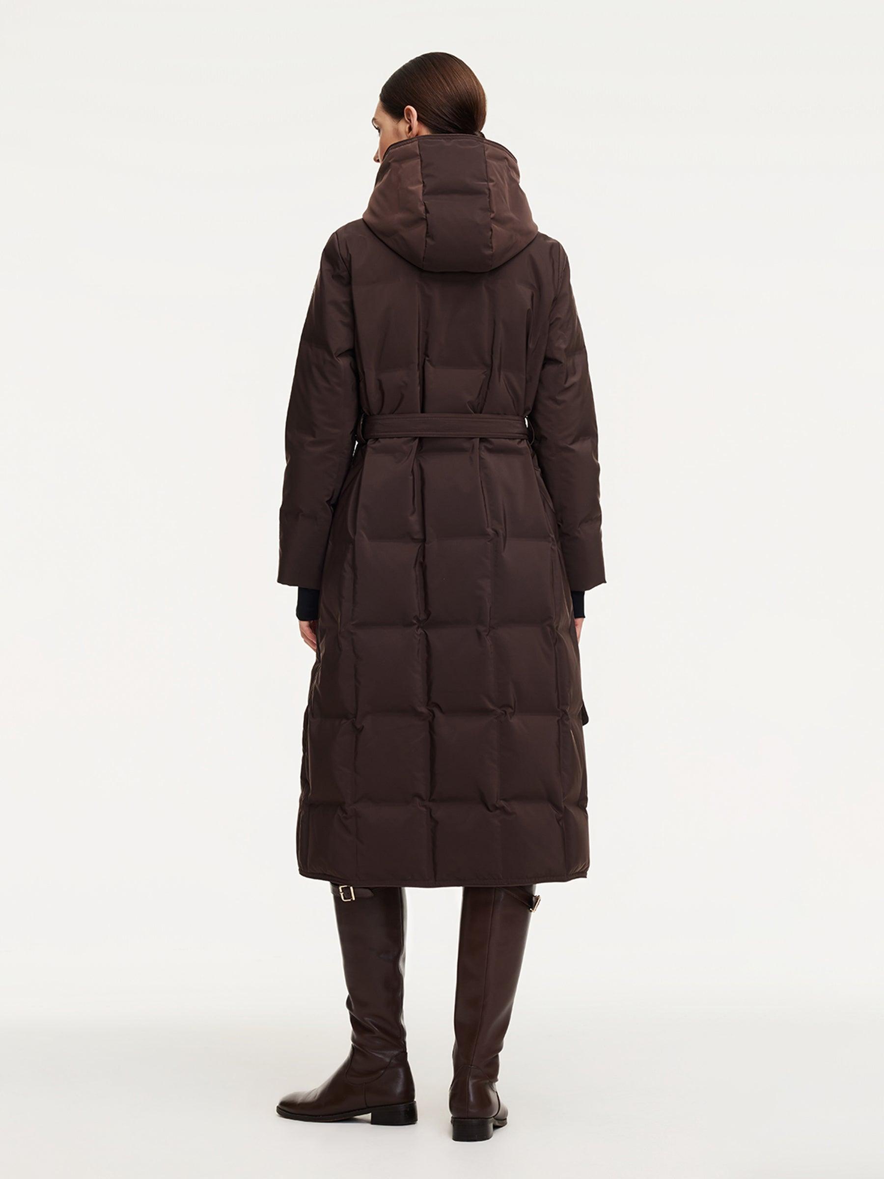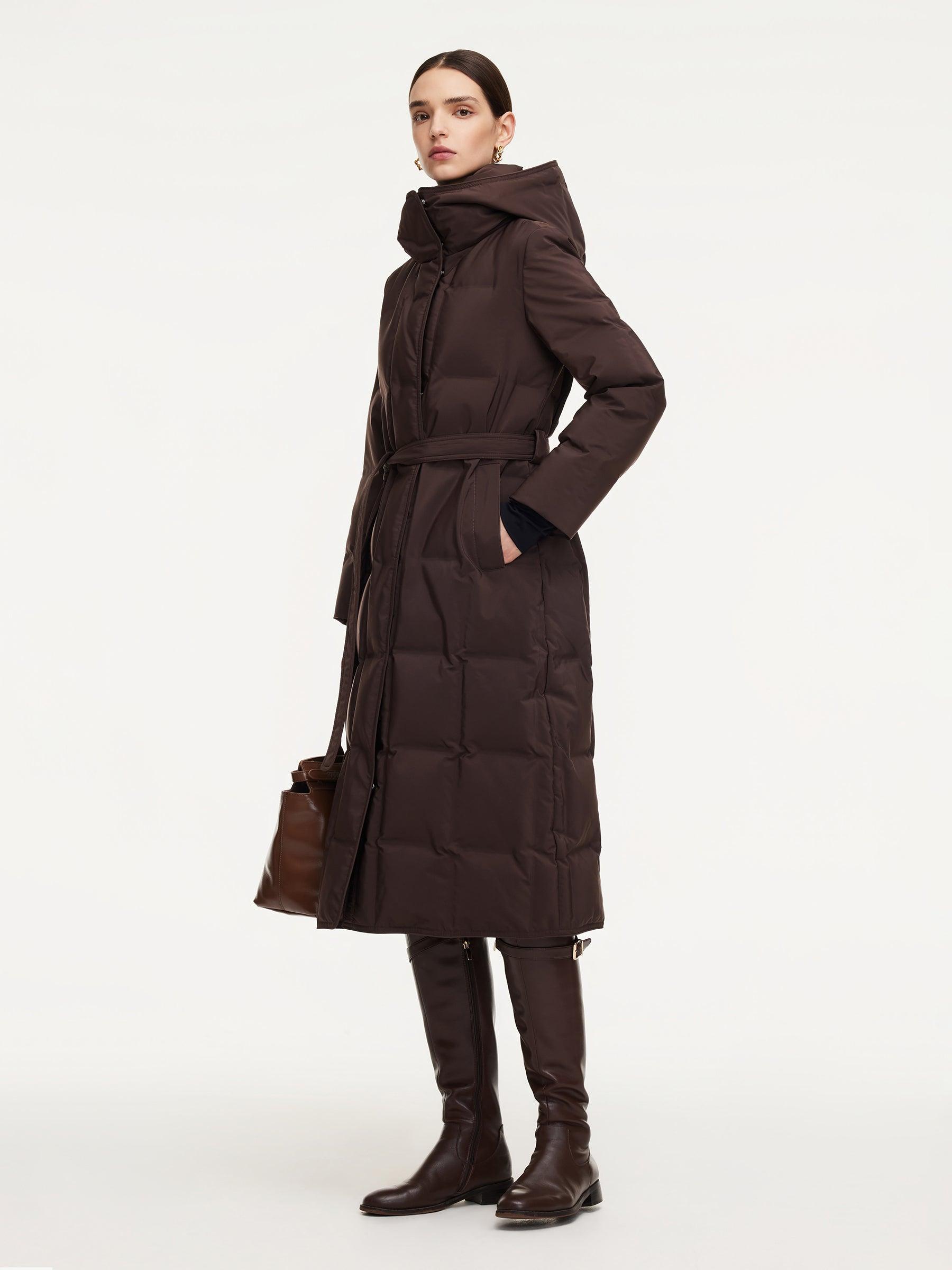 -95% down content and 90% down cluster content -Graphene lining for better warmth -Built-in elastic straps for comfort Filled with 95% premium Polish white goose down, this wrap overcoat offers superior warmth and lightness. The fabric is smooth, structured, water-repellent, and anti-static for lasting comfort and clea