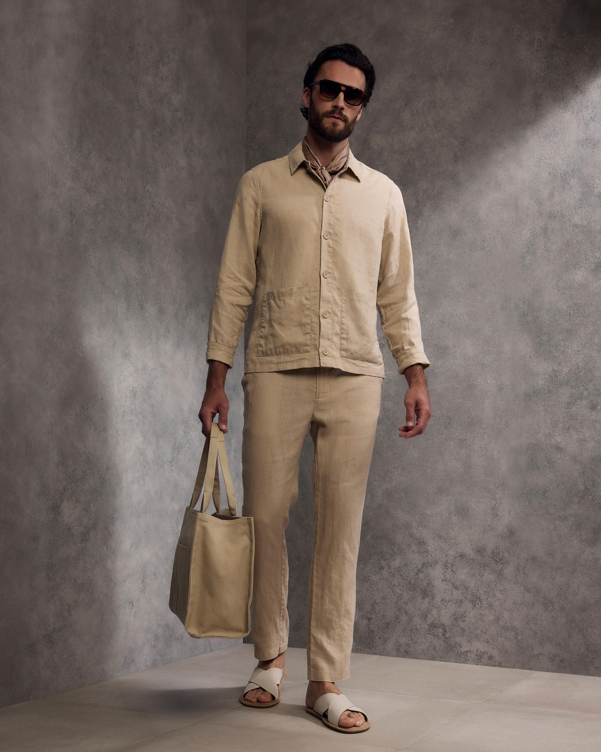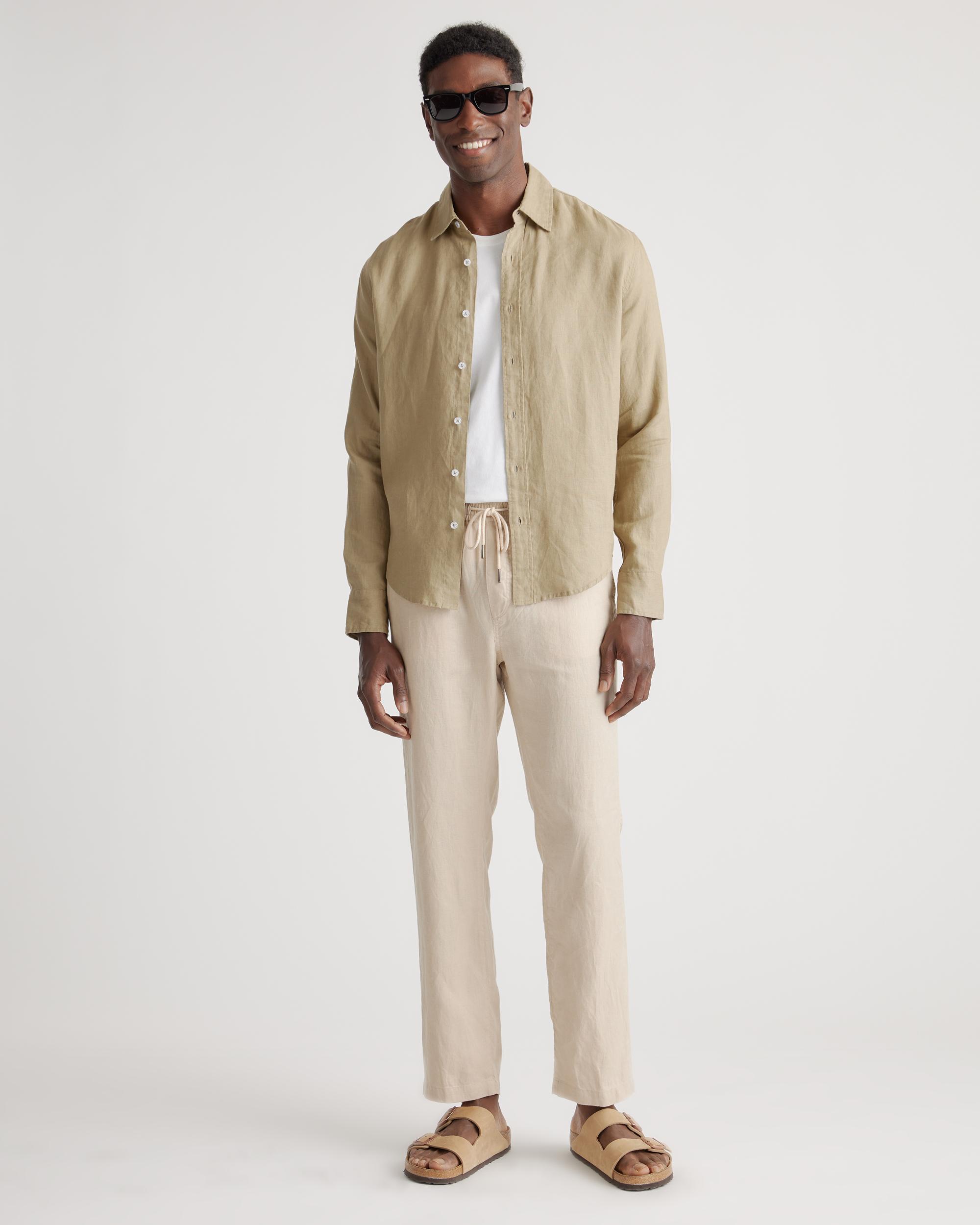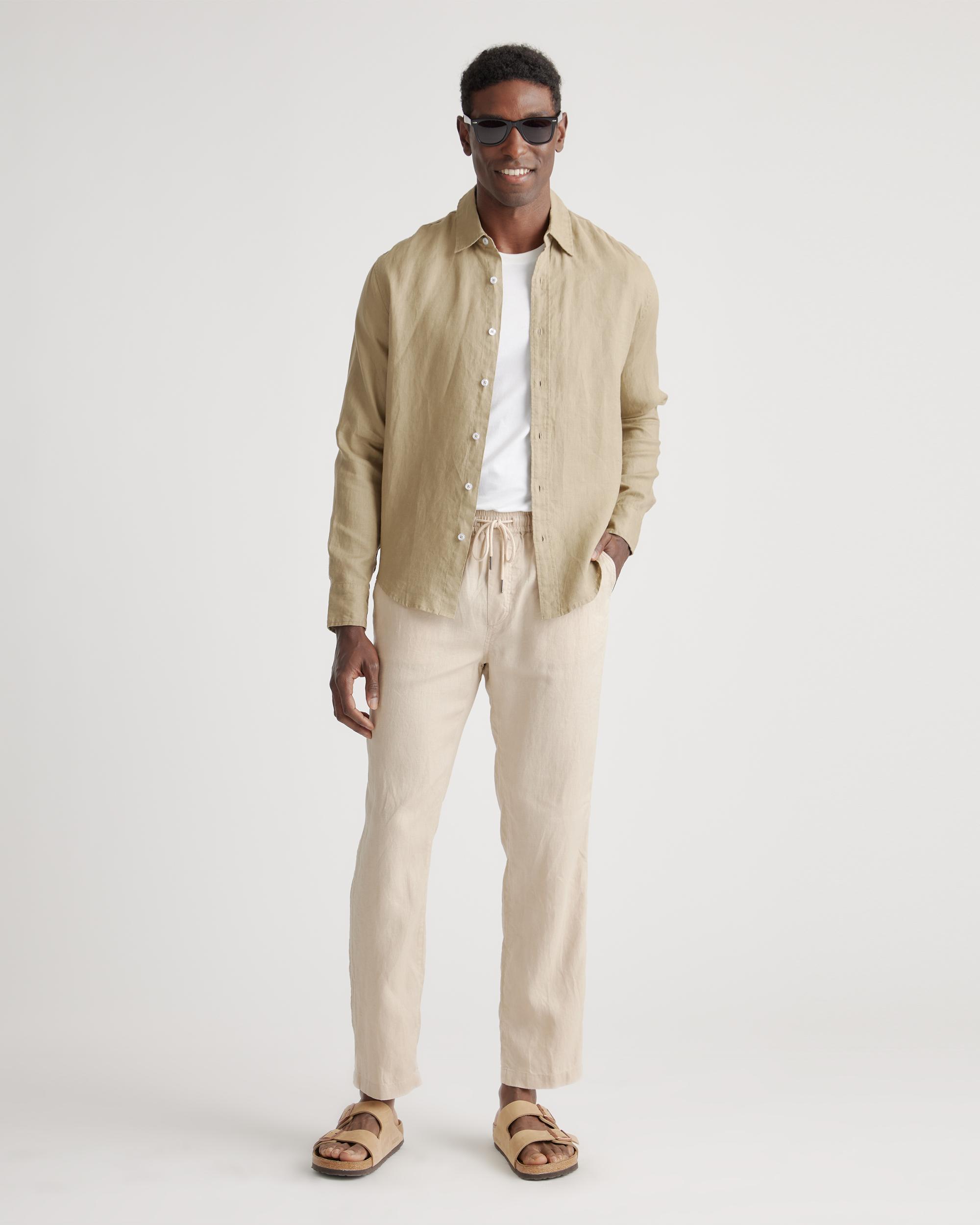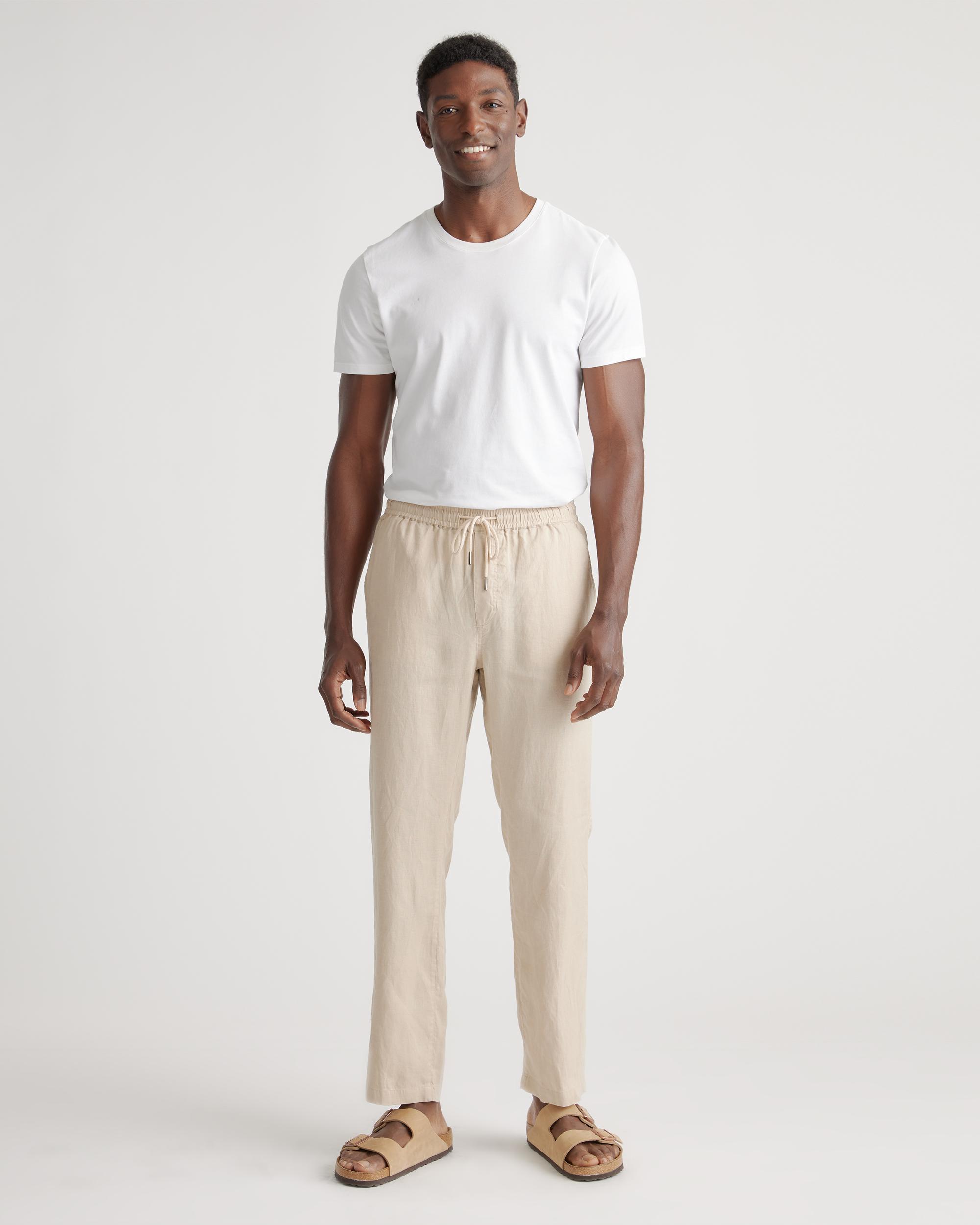 Our 100% European Linen Drawstring Beach Pants is the perfect addition to your summer wardrobe. Made from the highest quality linen and sustainably sourced from Europe, these pants are lightweight, breathable, and comfortable to wear in warm weather, and the drawstring waistband allows for a customizable fit. The timeless design and natural fabric make these pants a versatile and sustainable choice for any summer outfit. Bonus: our linen fabric is also highly durable, ensuring that these pants will last for many seasons to come. | Quince | Men's 100% European Linen Drawstring Beach Pants in Driftwood, Size XXL