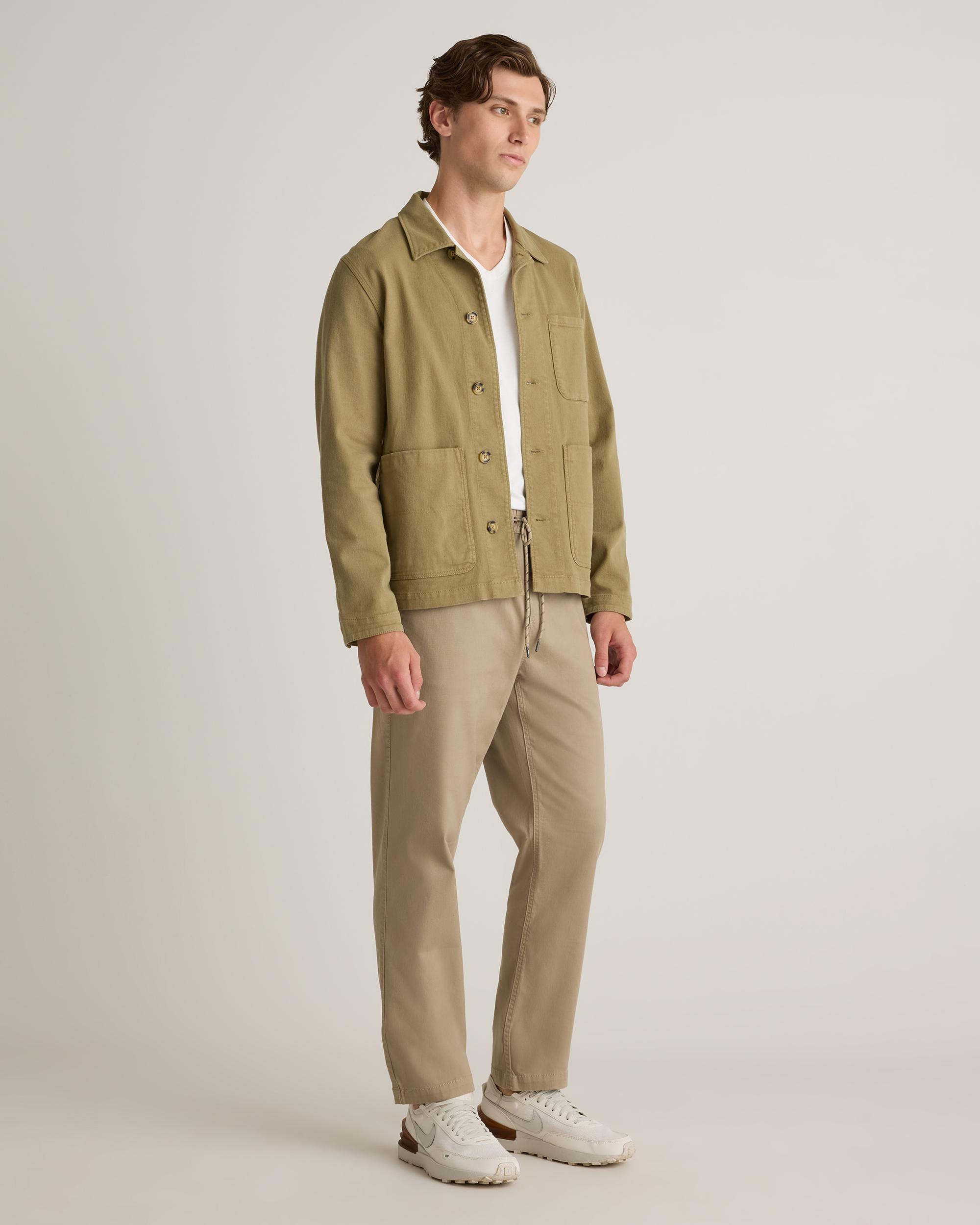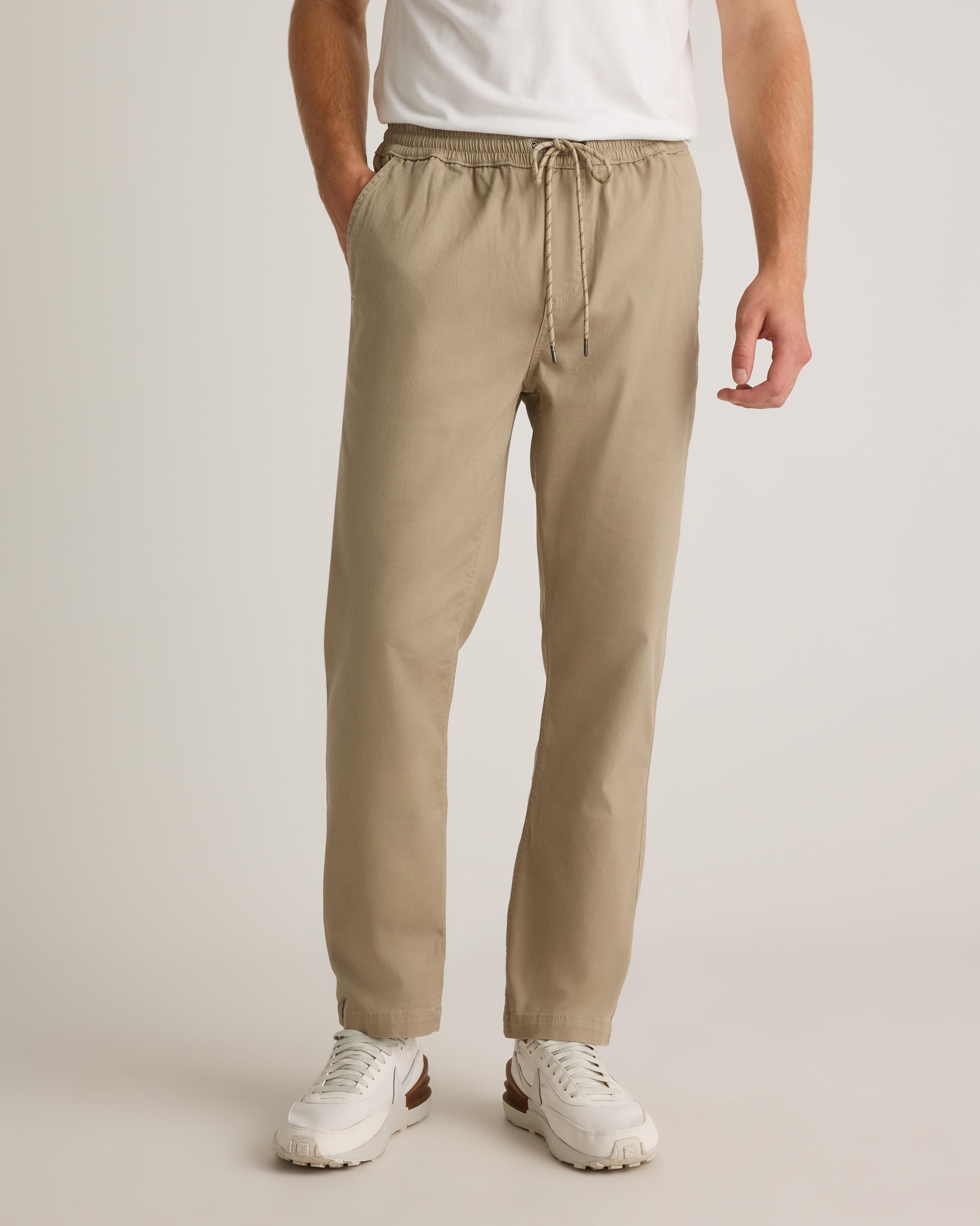 Elevate your casual wardrobe with our Men’s Organic Cotton Drawstring Weekend Chino. Designed for the modern man who appreciates both style and comfort, these slim chinos seamlessly blend classic appeal with contemporary flair. | Quince | Men's Cotton Chino Drawstring Pants in Sand Dune, Size Large, Organic Cotton