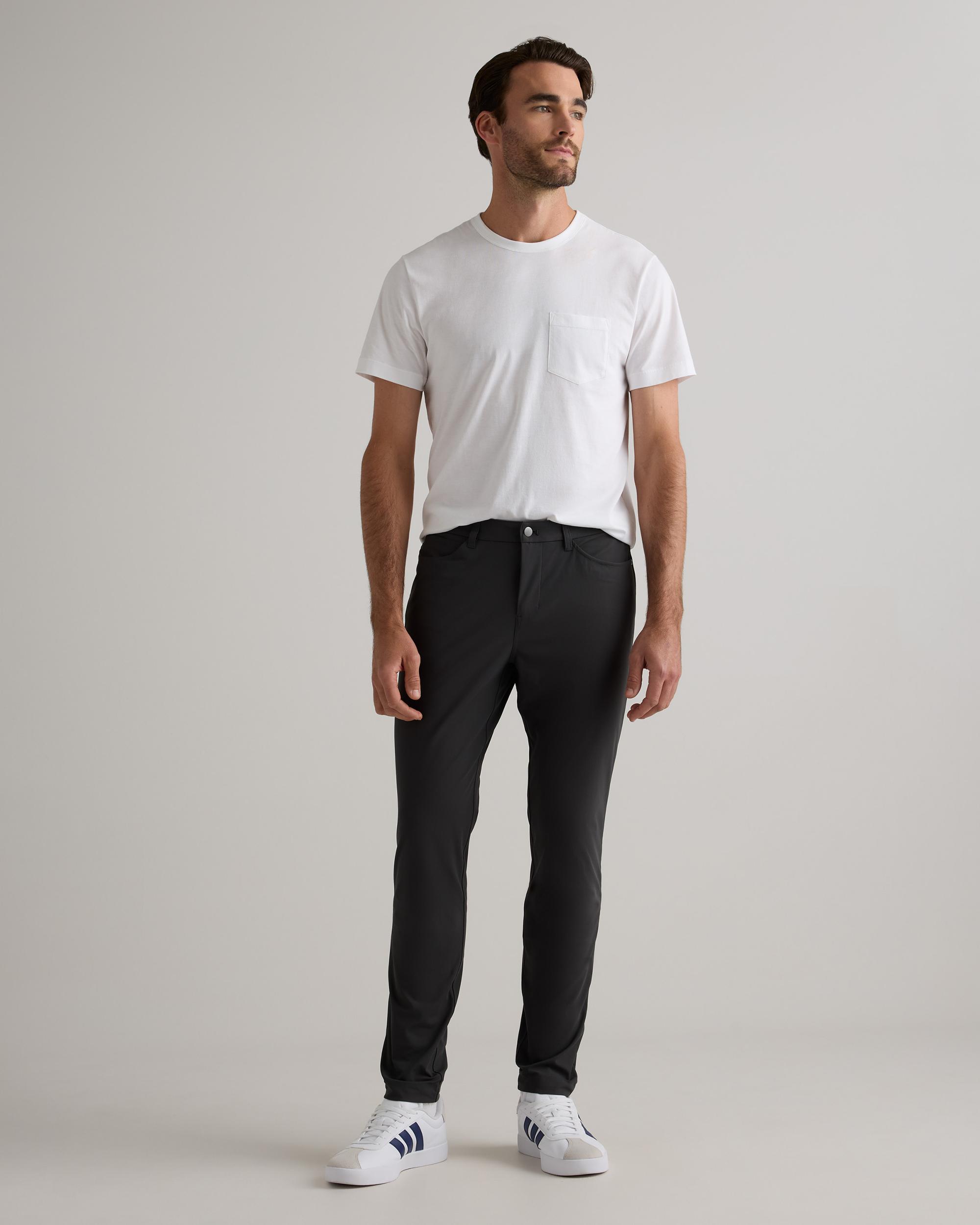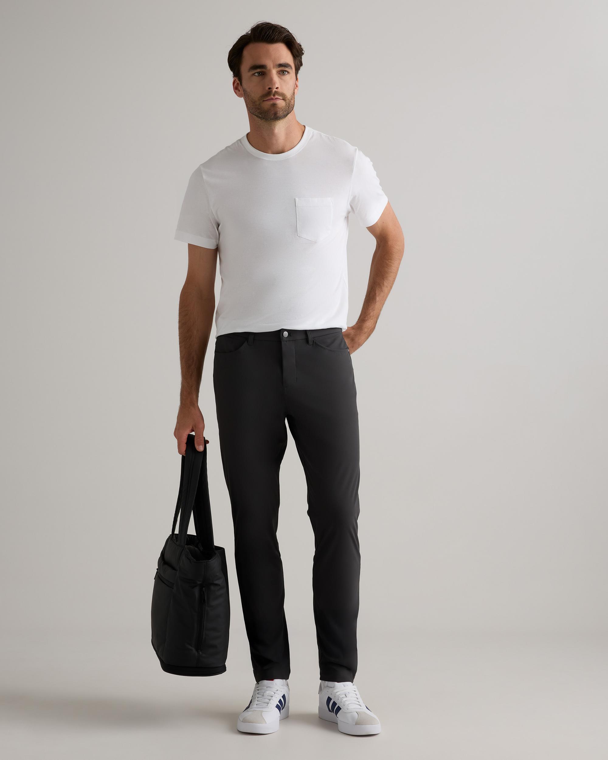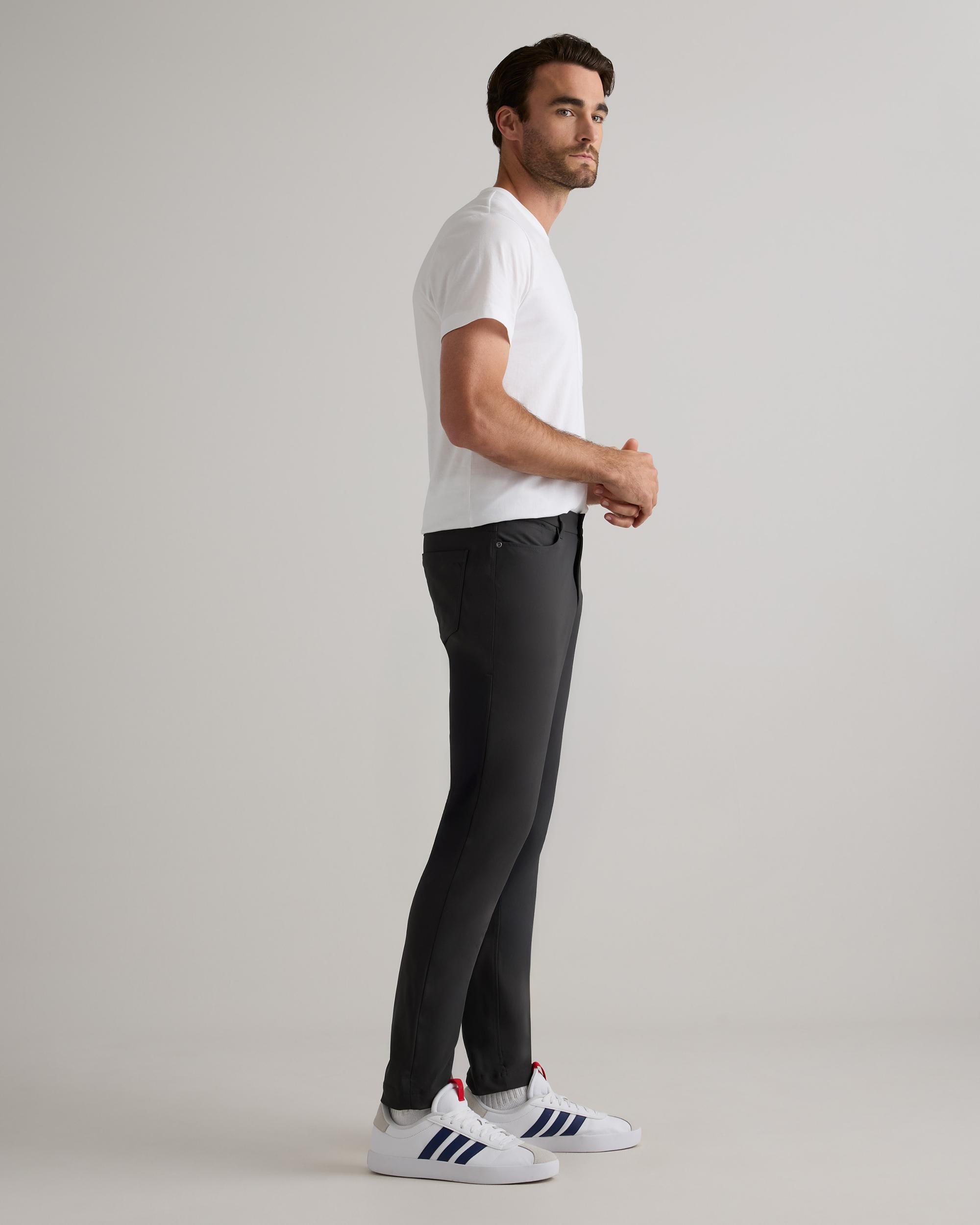 Your go-to for everything from office hours to off-duty plans. Designed with a classic 5-pocket silhouette, this pant leans more casual—like a cleaned-up pair of jeans, but crafted from lighter-weight performance fabric. Moisture-wicking, wrinkle-resistant, and built with 4-way stretch, it delivers all-day comfort and modern style. A hidden zippered back pocket and gusseted construction keep you moving (and organized) wherever the day takes you. | Quince | Men's Everyday 5-Pocket Tech Pants in Steel Grey, Size 36X30, Recycled Polyester